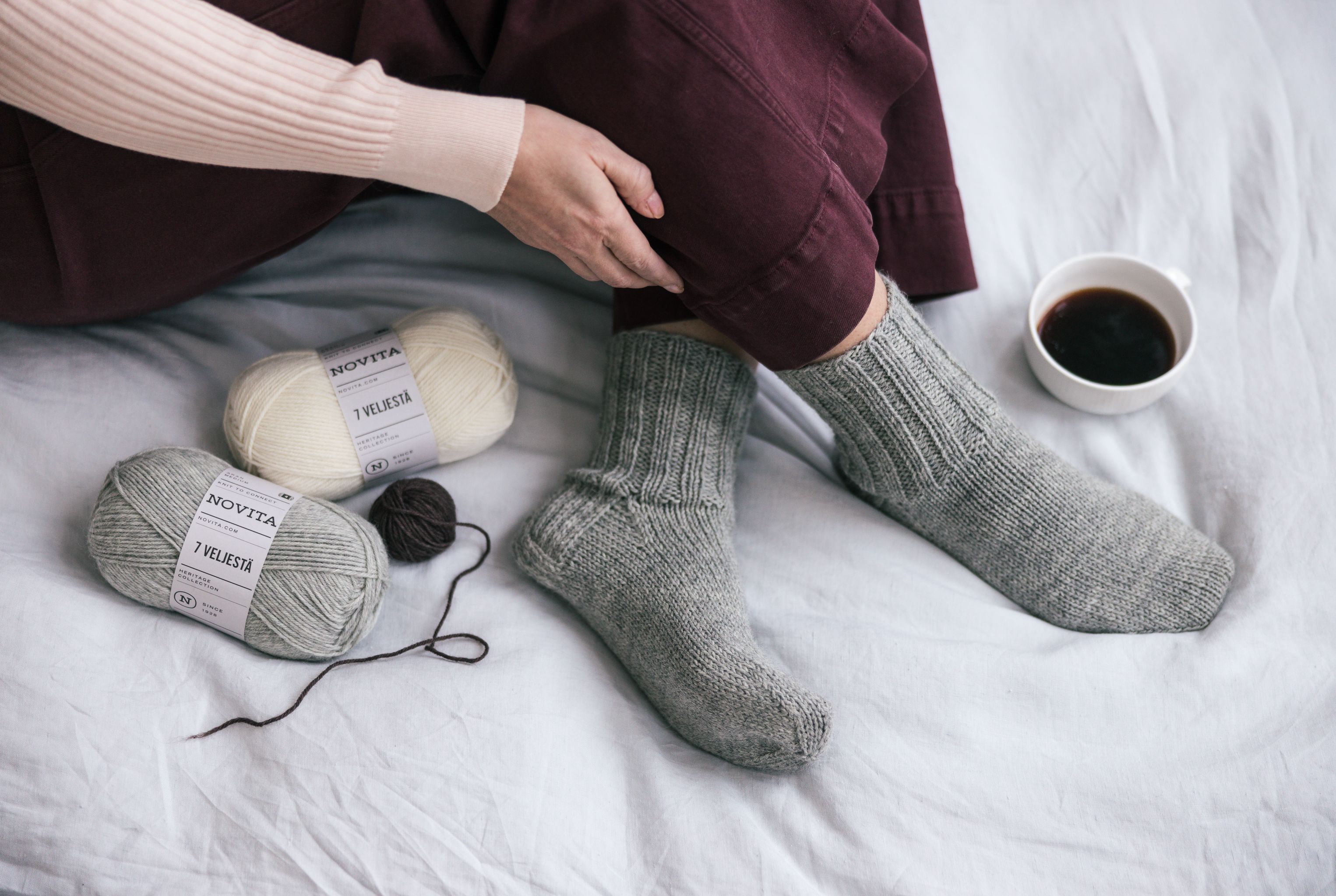 ”Standardeja ei ole kehitetty itse käsin neulottaville tuotteille vaan teollisille kankaille ja kudoksille, joten Novitalla on myös paljon omia käytäntöjä”, Minna kertoo.