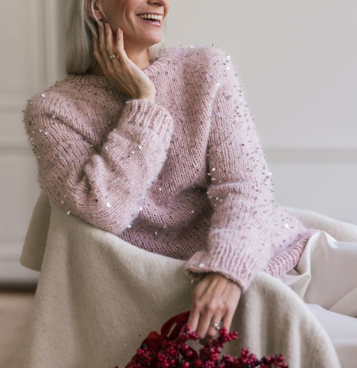 Suuret puikot ja kimaltavia paljetteja – unelmien neuleprojekti, joka sopii aloittelevallekin neulojalle. Malliltaan yksinkertaisen tyylikäs Kimmellys-paita neulotaan yhdessä pehmeällä Novita Halaus -langalla sekä Novita Loisto -paljettilangalla.
