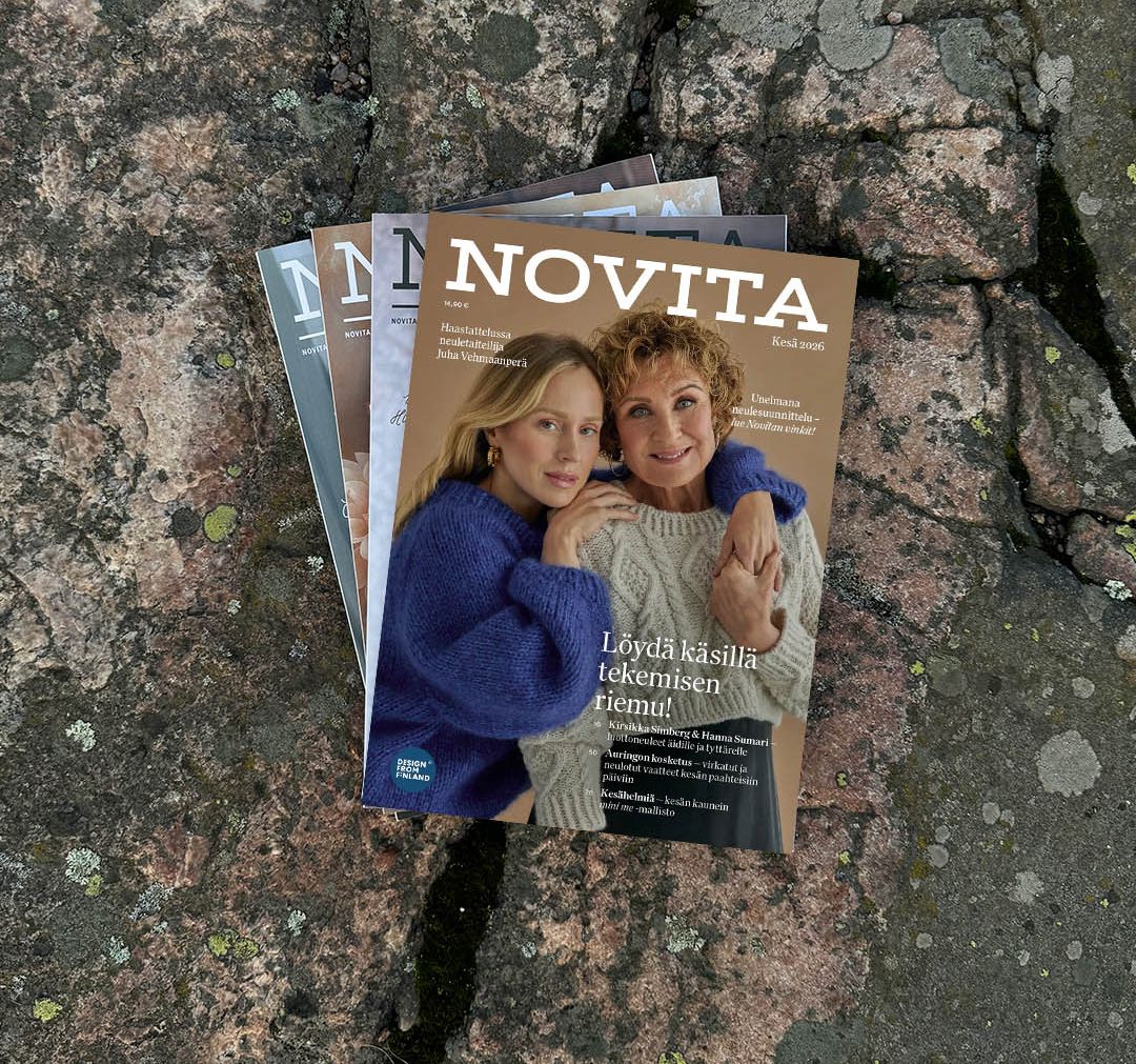 Kerro mielipiteesi Novita-lehdestä sekä siitä, mitä toivoisit lehdeltä tulevaisuudessa. Kyselyyn voi vastata 6.4.2026 asti, minkä jälkeen arvomme kaikkien yhteystietojensa jättäneiden kesken 100 euron arvoisen lankapaketin.