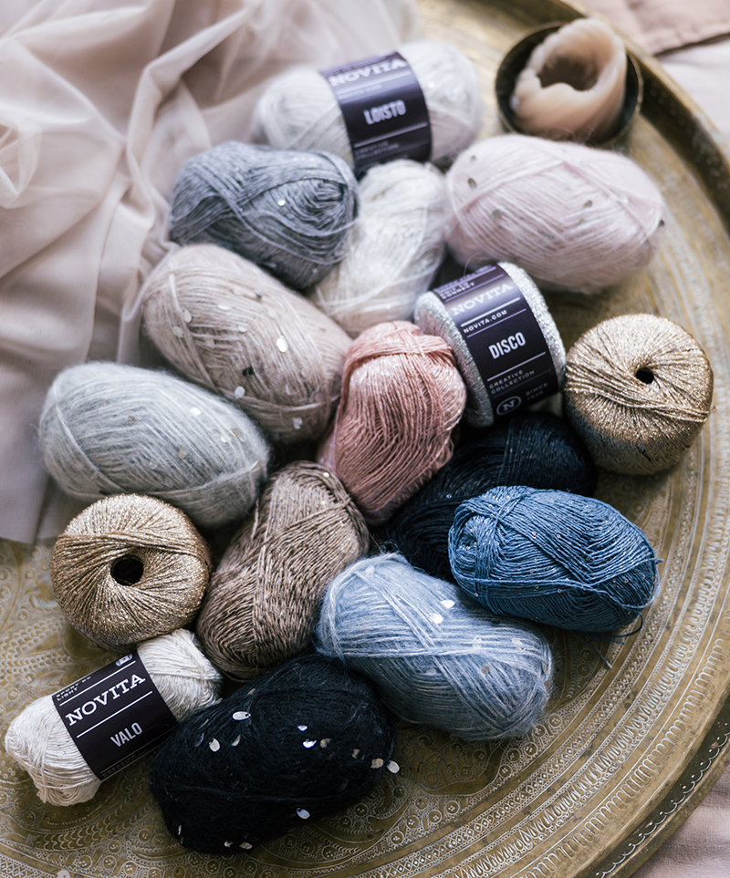 Pikkujouluaikaan sopivat kimallelangat tuovat neuleisiin hienostunutta säihkettä. Novitan upeita kimallelankoja voit käyttää sellaisenaan tai neuloa niitä yhdessä muiden lankojen kanssa.