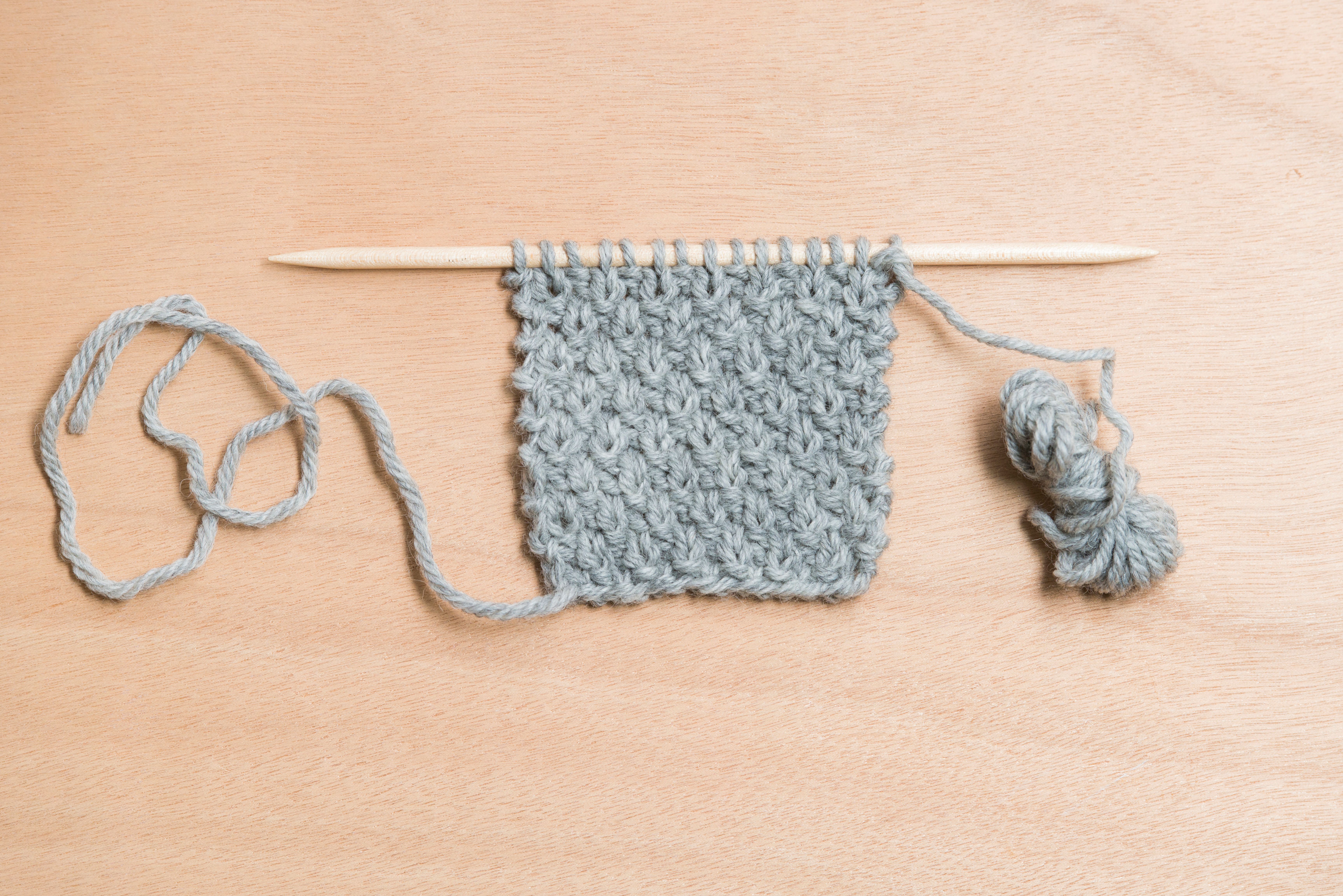 Jatka nurjien ja oikeiden silmukoiden vuorottelua kerroksen loppuun.