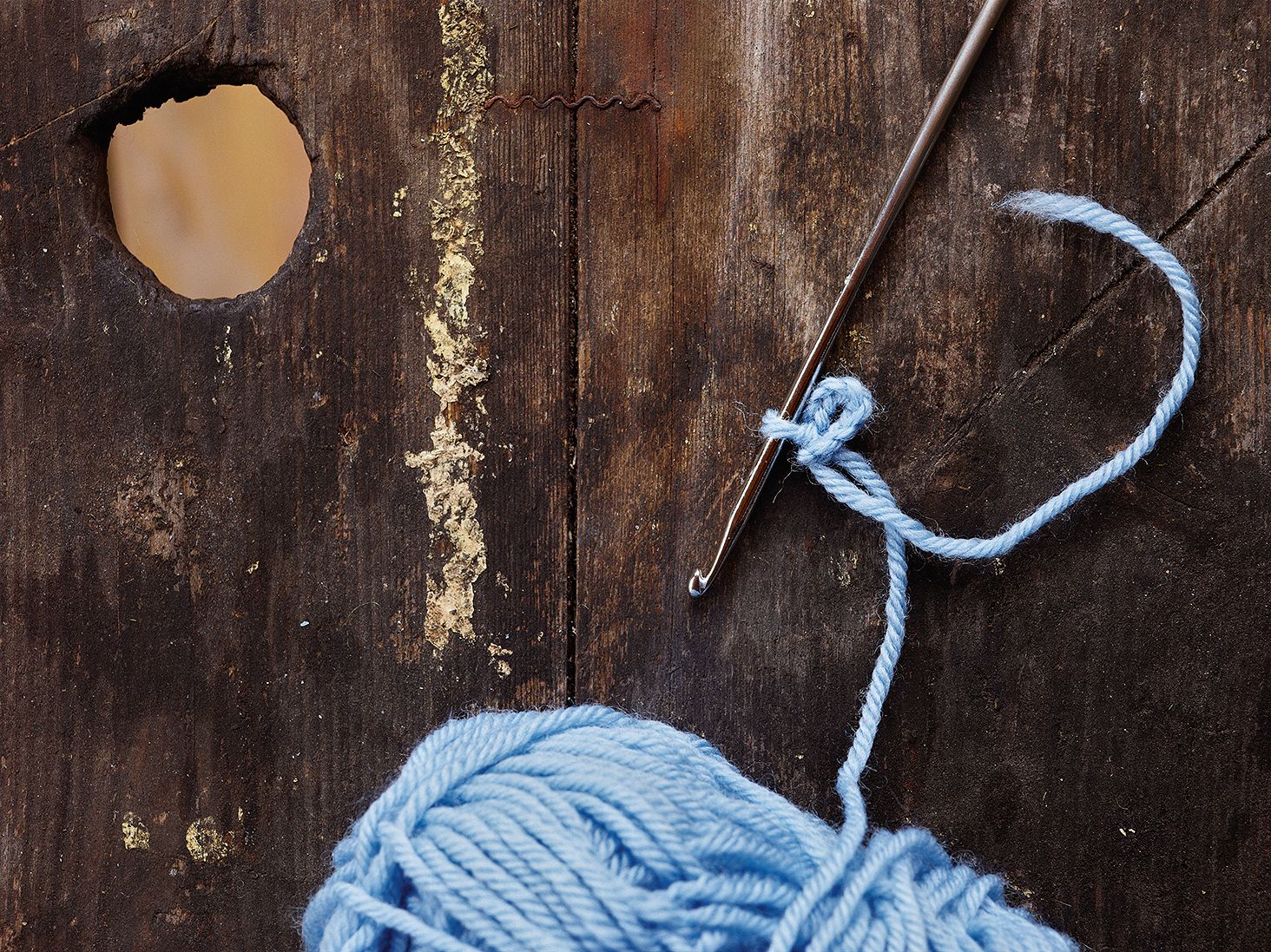 Voit päätellä langat työn edetessä virkkaamalla langanpäät silmukoiden sisään.