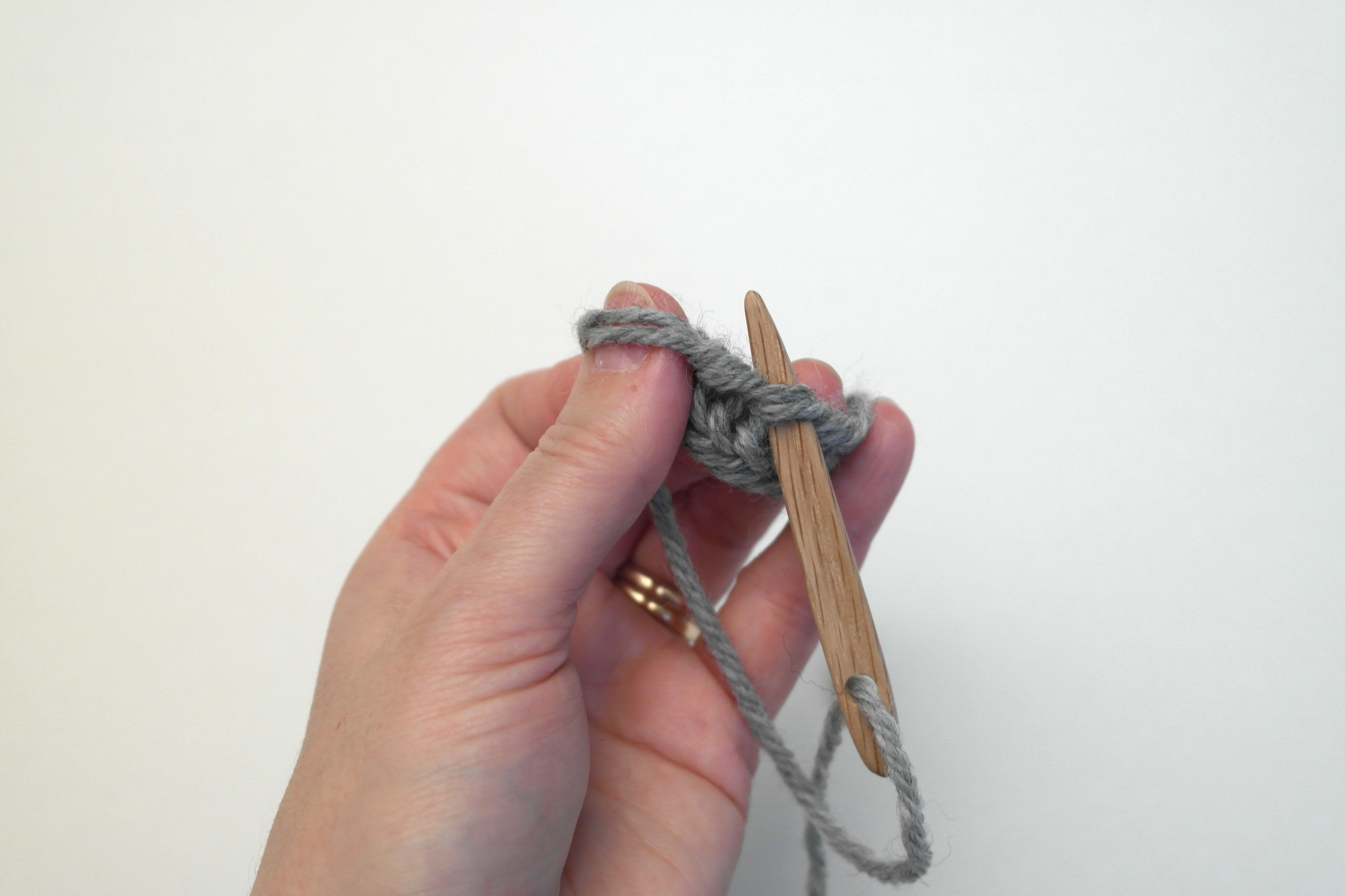Jätä työn reunassa väliin kaksi silmukkaa vähemmän kuin teit ketjuun. Ota työn reunasta seuraavat kaksi silmukkaa neulalle.
