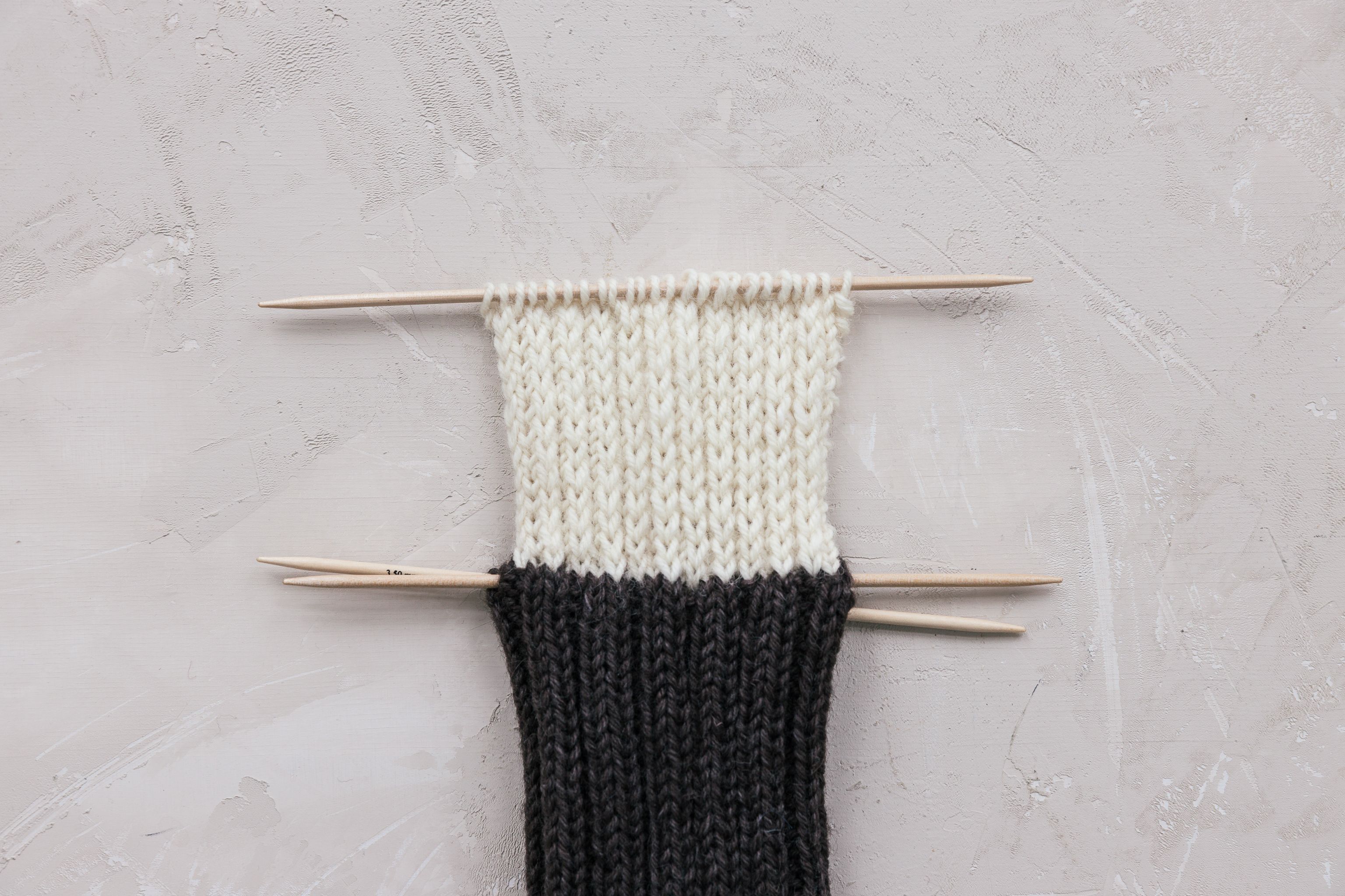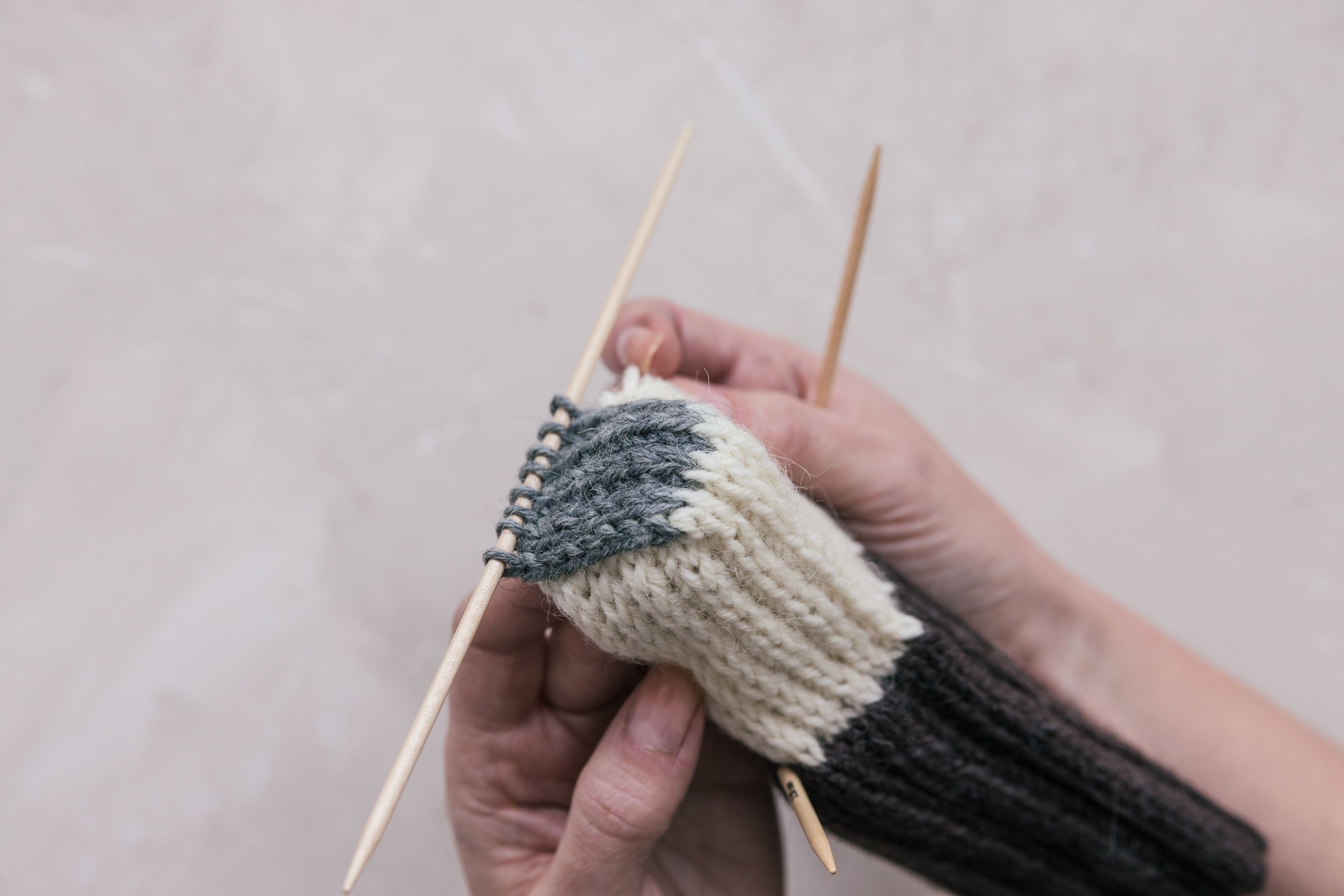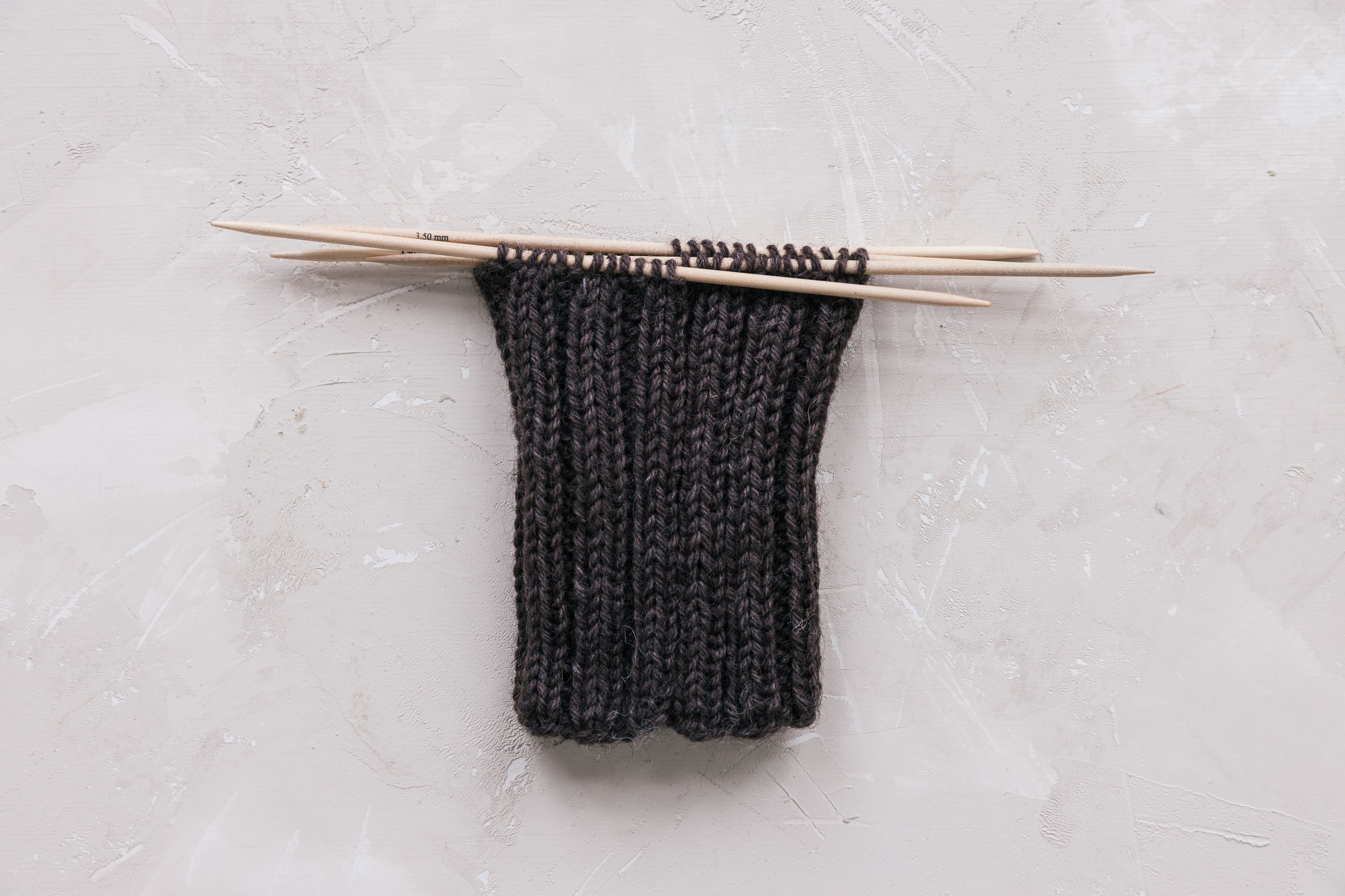 Luo 40(48)56 silmukkaa sukkapuikoille ja jaa silmukat neljälle puikolle, 10(12)14 kullekin.