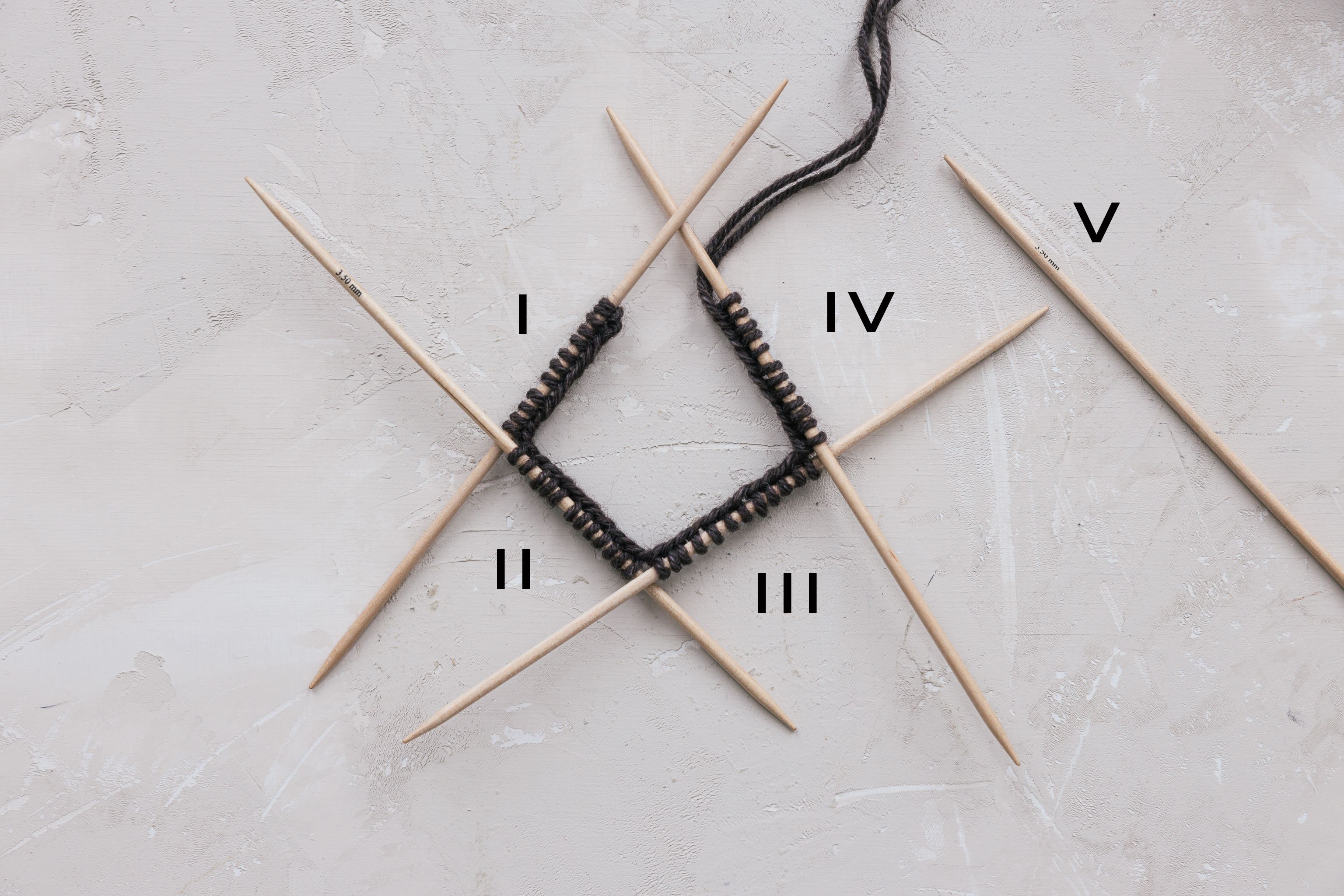Aloita kantatilkku neulomalla I puikon silmukat IV puikolle niin, että puikolla on nyt 20(24)28 silmukkaa.