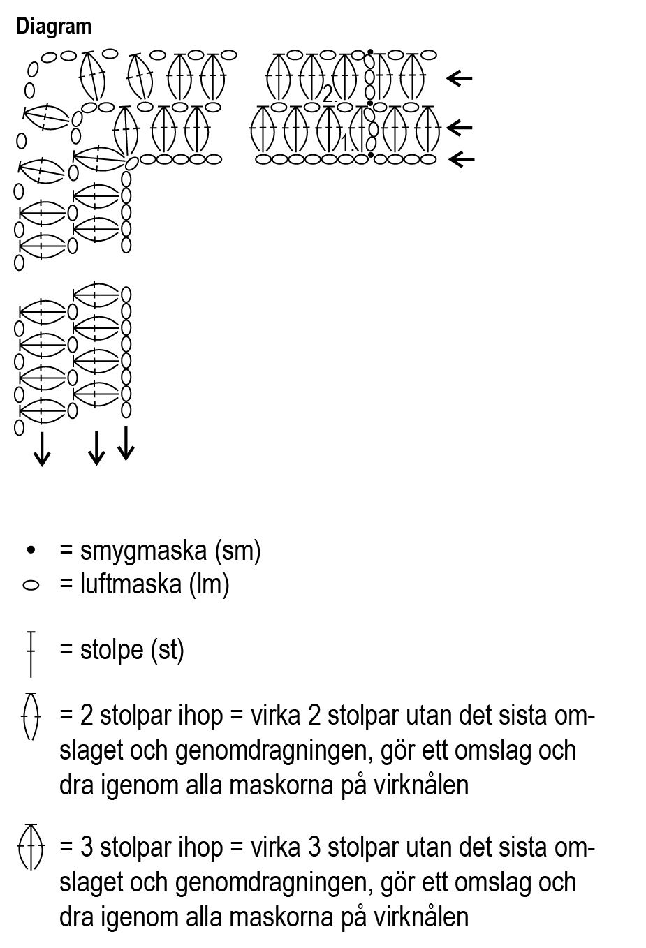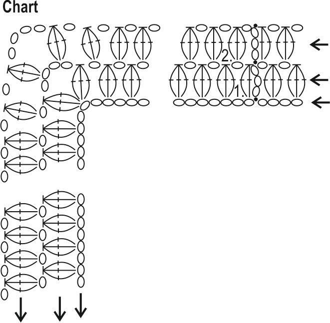 Crochet hook: Novita 5 mm (UK 6 / US H-8) or size needed to obtain gauge Novita 4½ mm for the neckline (UK 7 / US 7)