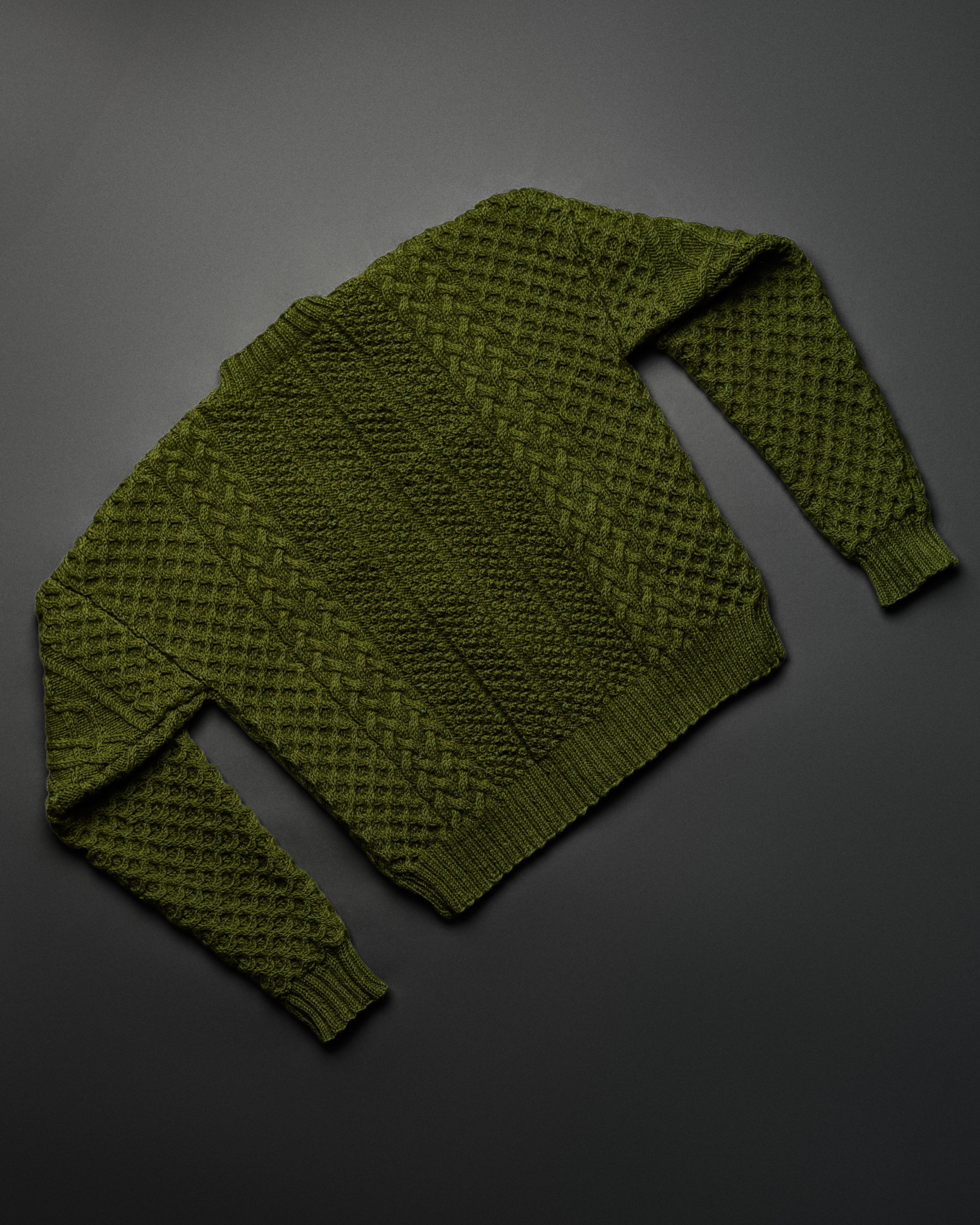The Samppa cardigan is knitted in sections, front and back separately with Novita 7 Brothers yarn. The sleeves are knitted crosswise and for the cuff ribbing the stitches are picked up from the edge of the sleeve piece. The version seen on the catwalks has a medallion row on the chest, but the knit with the cable pattern looks good without it.