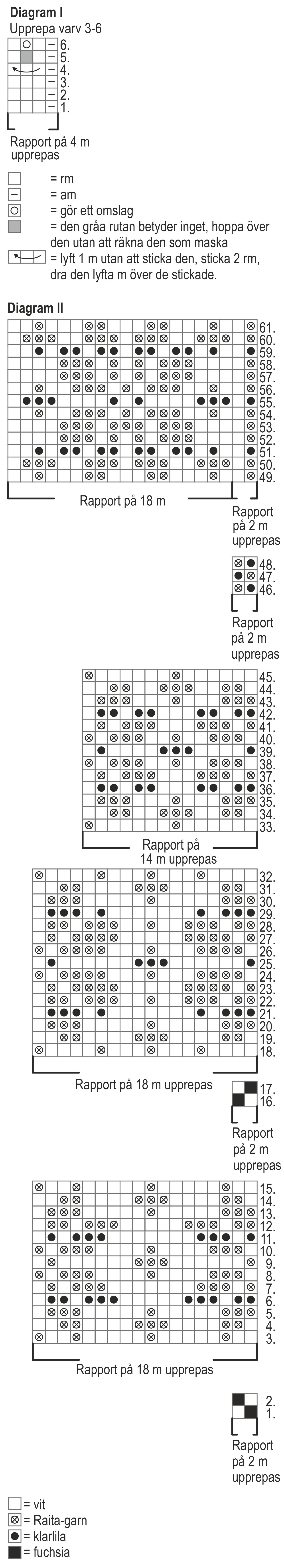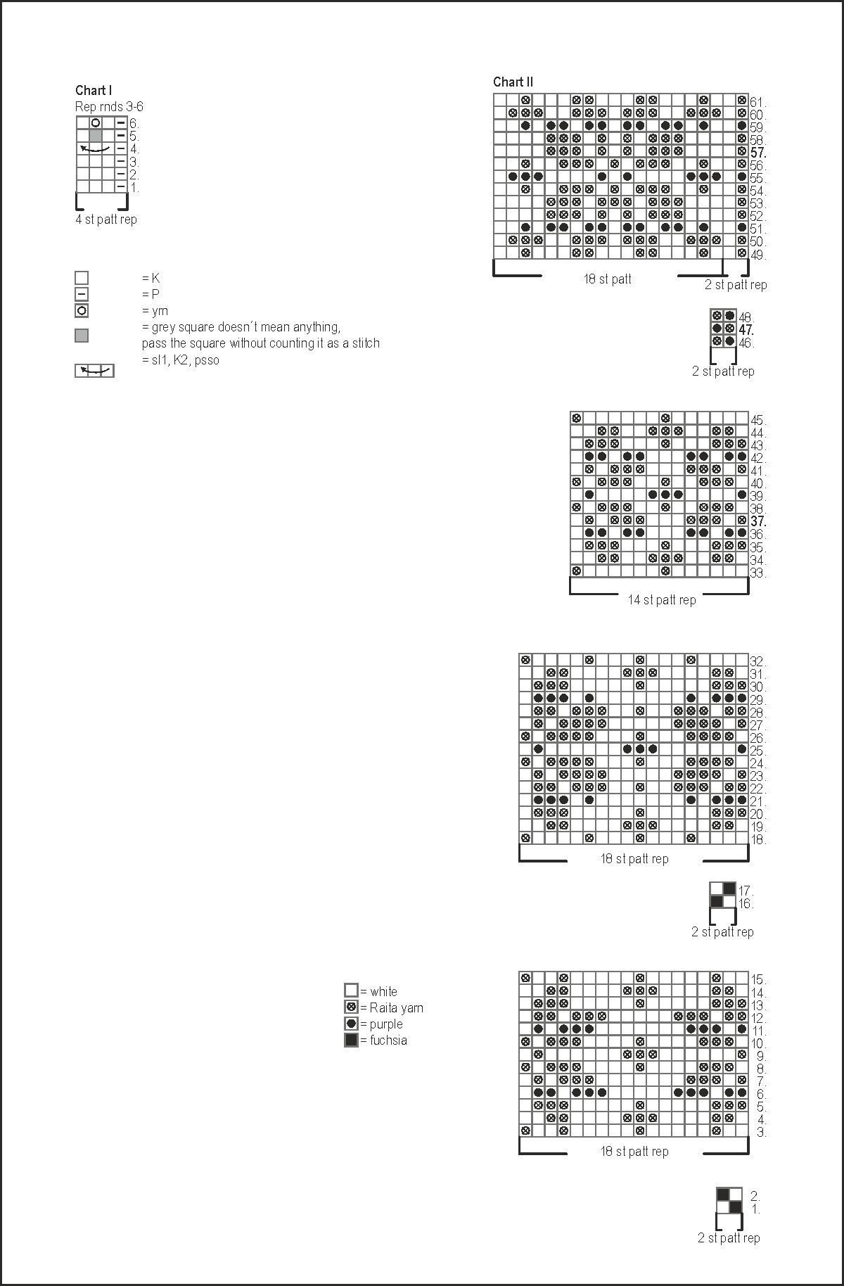 Using purple yarn knit 1 rnd. Cont in patt from chart II. as folls: