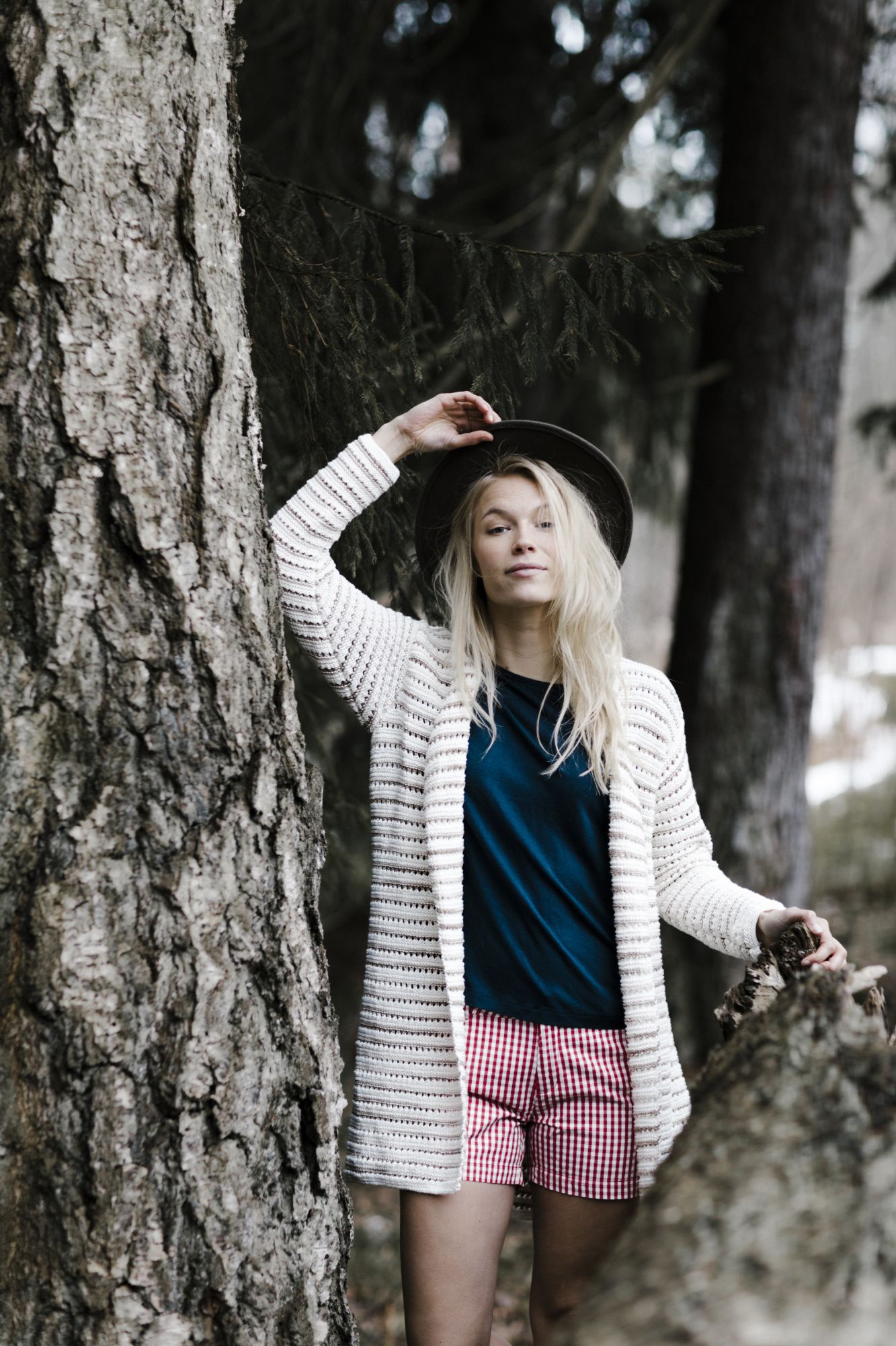 When the piece measures 19(20)20(21)21(22) cm, decrease 1 st on the right end. Always decrease the 2nd st from the edge and keep working the outermost st as before. Repeat the decrease every 10 cm 3 more times = 60(64)68(72)78(82) sts.
