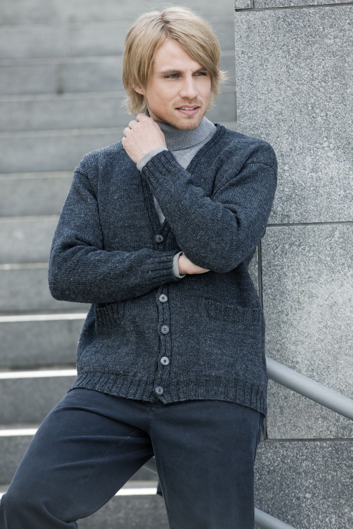 Miehen v-aukkoinen perusneuletakki