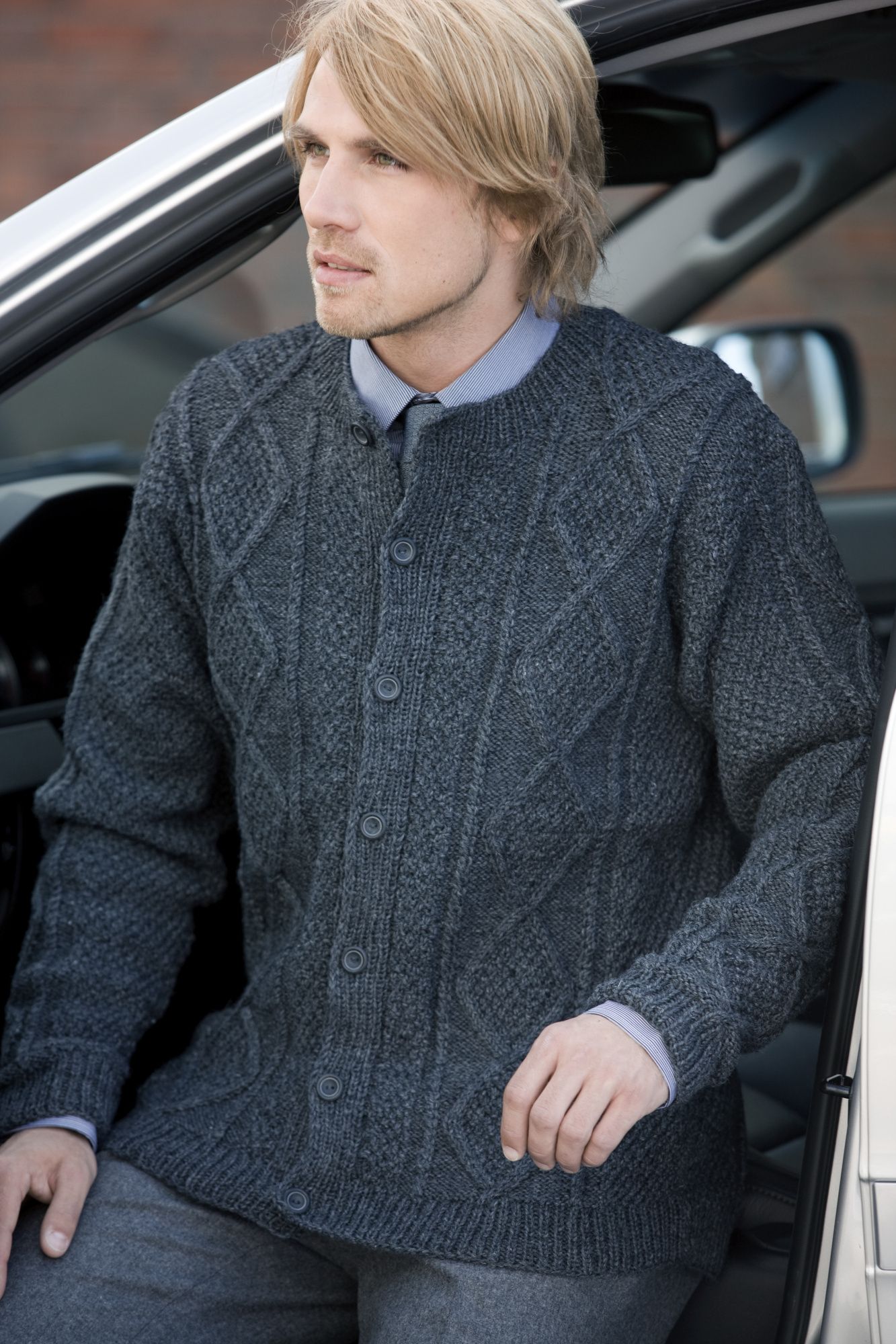 Miehen neulottu palmikkoslipoveri