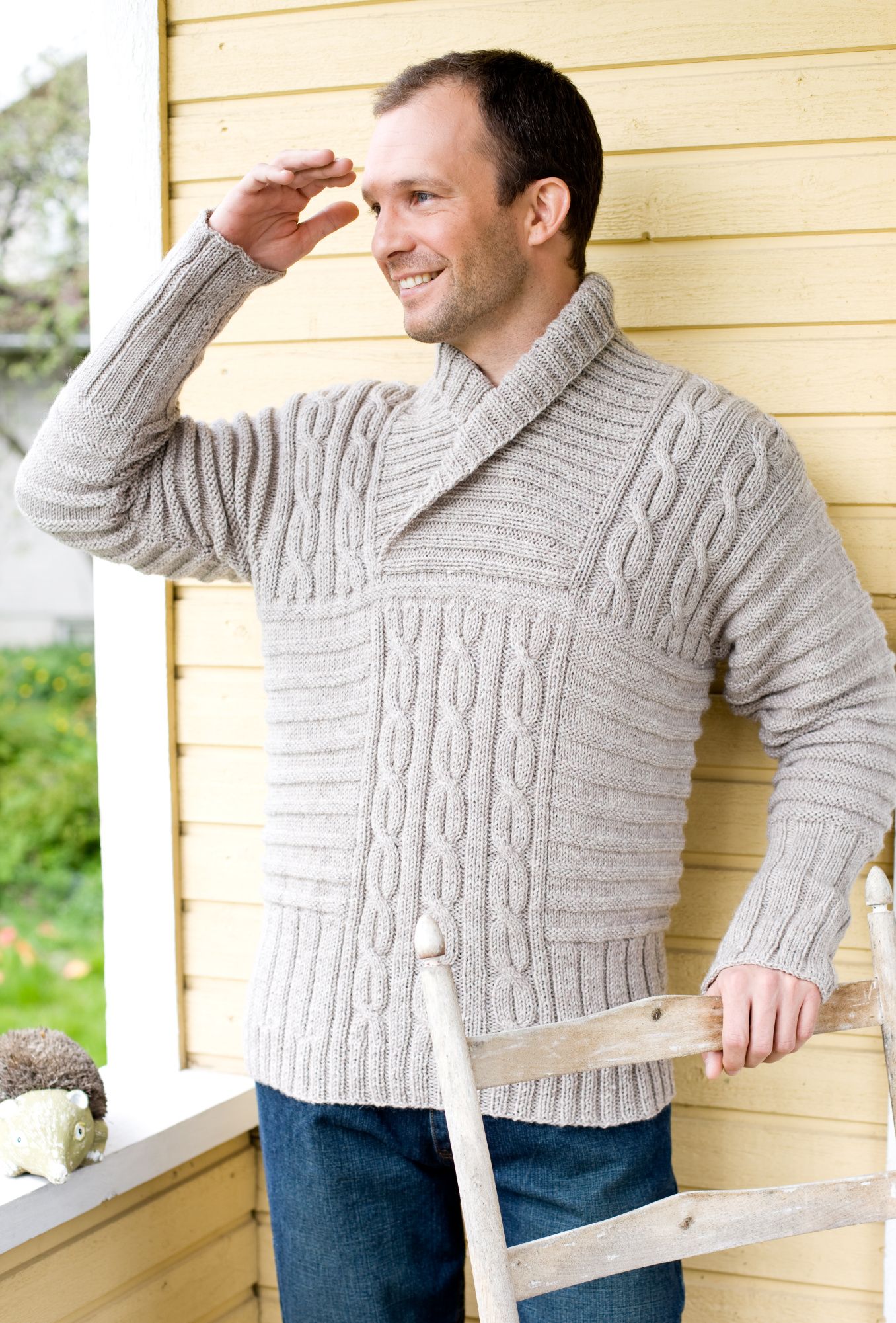 Miehen huivikauluksellinen palmikkoneule