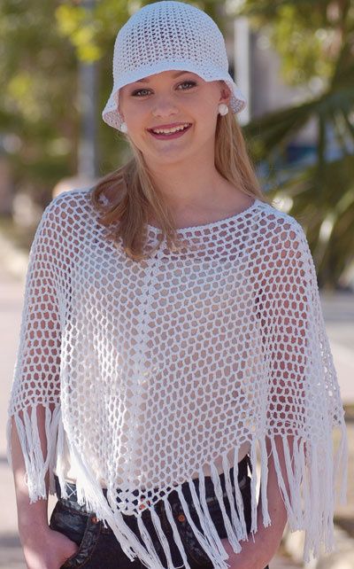 Verkkoponcho ja virkattu hattu