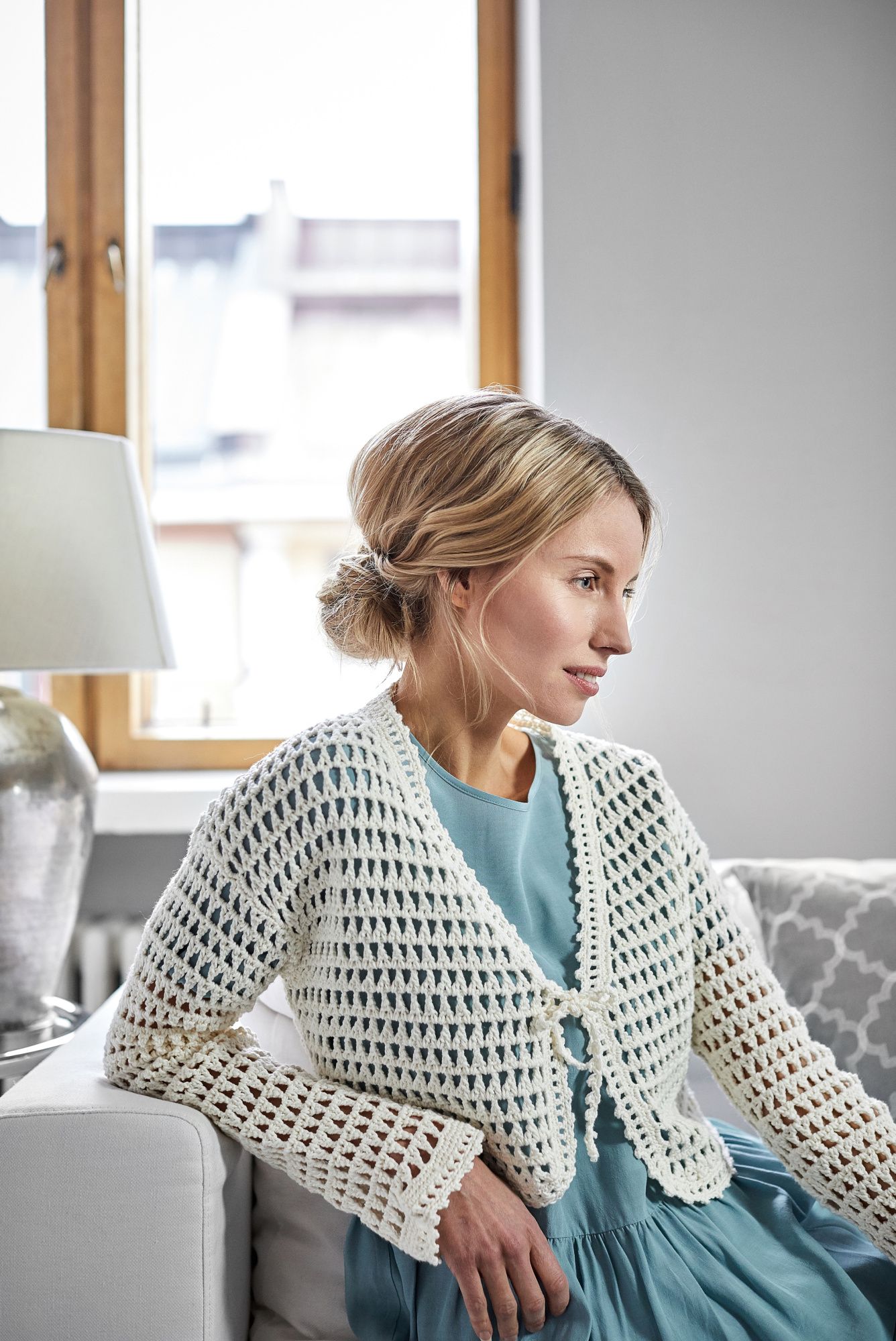 Naisen virkattu bolero Novita Cotton Soft (Kesä 2017, malli 16)