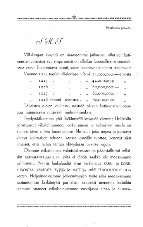 1930-luvulle tultaessa liiketoiminta kukoisti. Kampalanka oli löytänyt paikkansa kansan neulepuikoilla. Tupakkatehtaan tilat kävivät ahtaiksi, ja Ernst Gylfe alkoi suunnitella kunnianhimoista hanketta: omaa, modernia lankatehdasta.