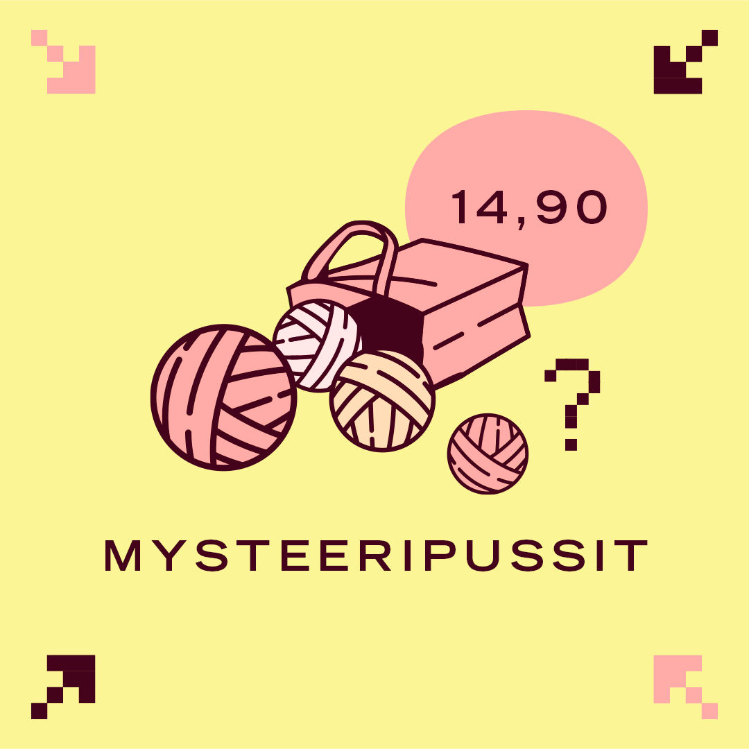 Jokainen valmiiksi pakattu pussi sisältää 600 grammaa Novitan tuttuja lankoja, kuten Tuulia, Nallea tai 7 Veljestä -lankaperheen lankoja. Lankojen värit ja materiaalit saattavat vaihdella pusseittain, sillä jokainen mysteeripussi on erilainen. Alennus on vähintään 50 % normaalihinnoista, eli saat tuplasti vastinetta rahoillesi. Huom. tilaus ei sisällä erillistä pussia.