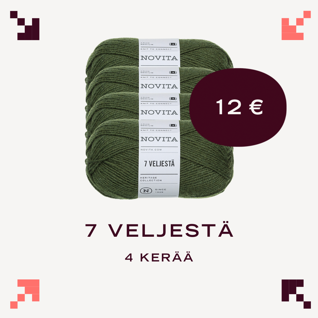 Joulun kauneimmat sukat neulotaan rakastetusta Novita 7 Veljestä -langasta, ja nyt saat langat tarjoushintaan! Valitse omat suosikkivärisi ja nappaa messujen nipputarjous langalle.