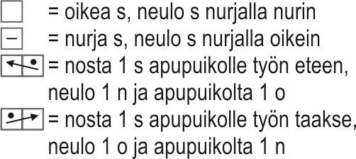 Joustinneule: neulo *1 o, 1 n* ja toista *-* kerros loppuun.