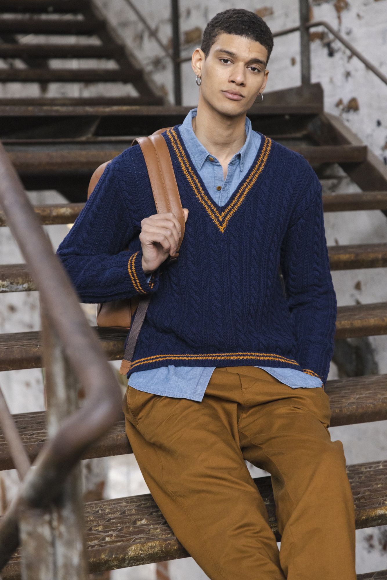 Danny-palmikkopusero neulotaan pehmeästä Novita Cotton Feel -langasta. Perinteinen palmikkoneule saa uuden ilmeen raikkaan oransseilla tehosteraidoilla. V-aukkoisen neuleen alle voi pukea yhtä hyvin kauluspaidan tai rennon t-paidan. Ommellut saumat auttavat pitämään puseron ryhdikkäänä.