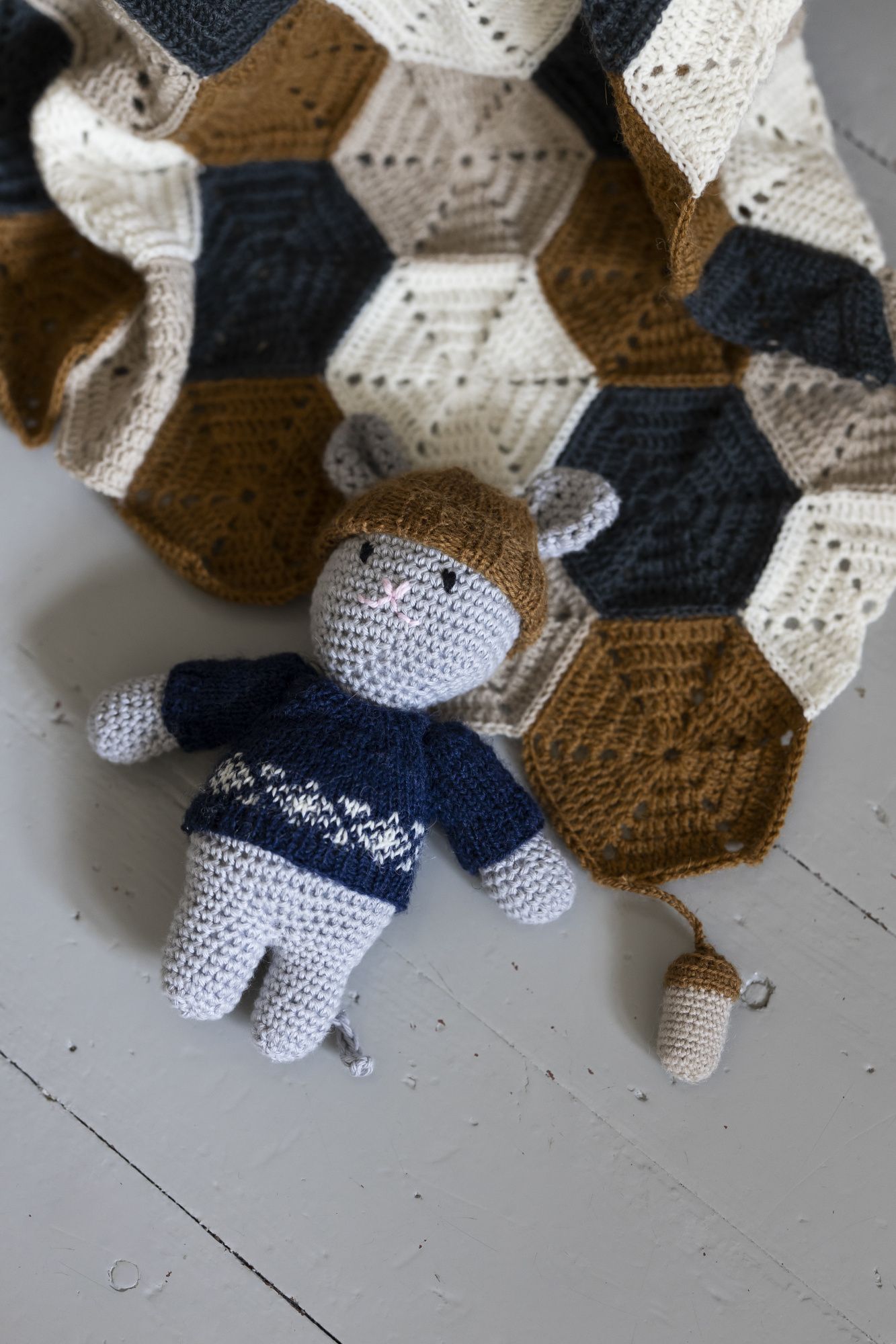 Virkkaa Hermanni hiiri kaveriksi syksylehden Hertta pupulle! Molemmille kaveruksille sopivat samat neulotut vaatteet.