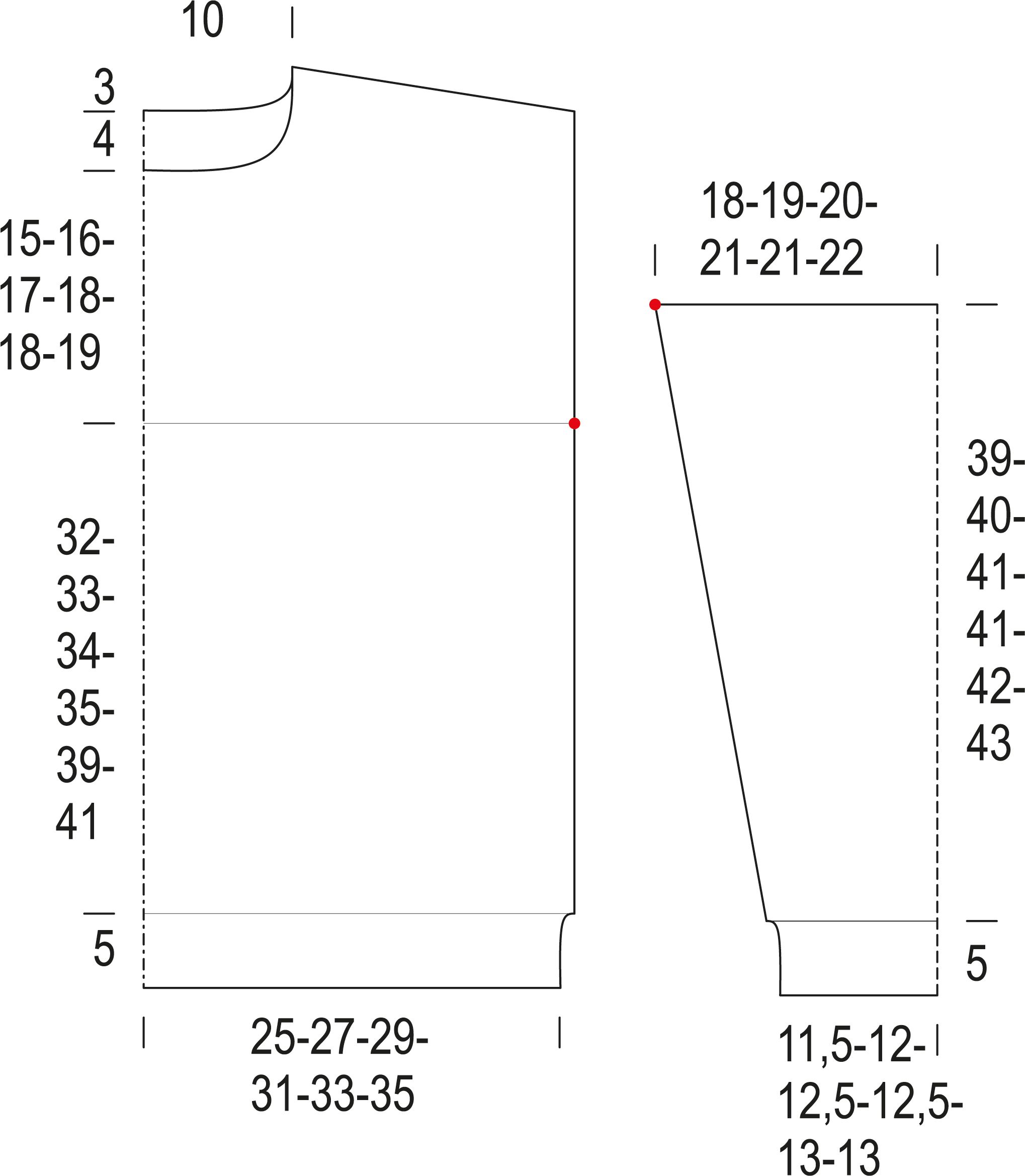 Ompele olkasaumat. Kiinnitä hihat kädentielle kaavan punaisten kohdistusmerkkien mukaan. Ompele hihojen sisäsaumat ja sivusaumat.