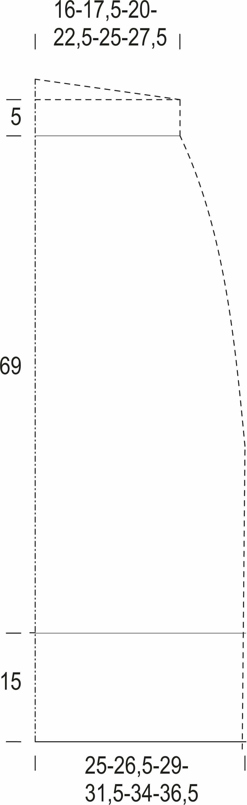 Toista lisäykset samoissa kohdissa 3 cm:n välein vielä 5 kertaa ja sitten 10 cm:n välein 2 kertaa. Työssä on 220(232)254(278)298(320) s.