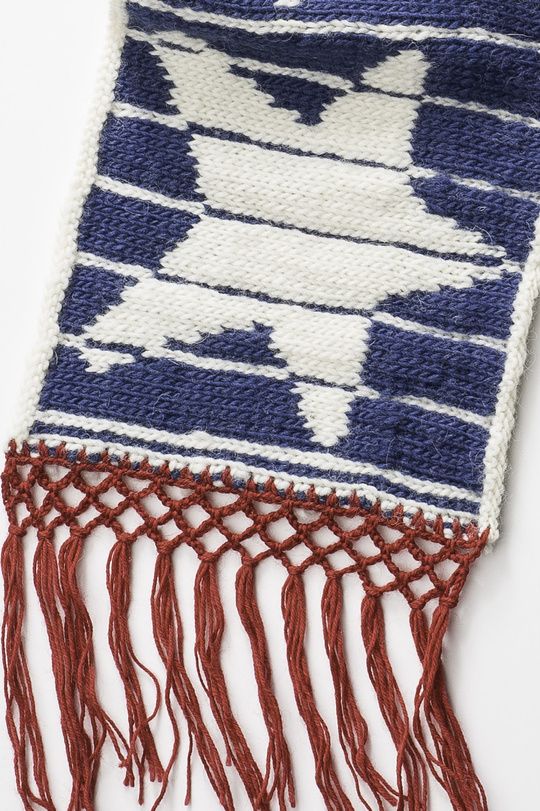 Neulo luonnonvalkoisella langalla 1 krs oikein, käännä työ ja neulo nurjalla 1 krs oikein. Käännä työ ja päätä silmukat oikeaa neuloen.