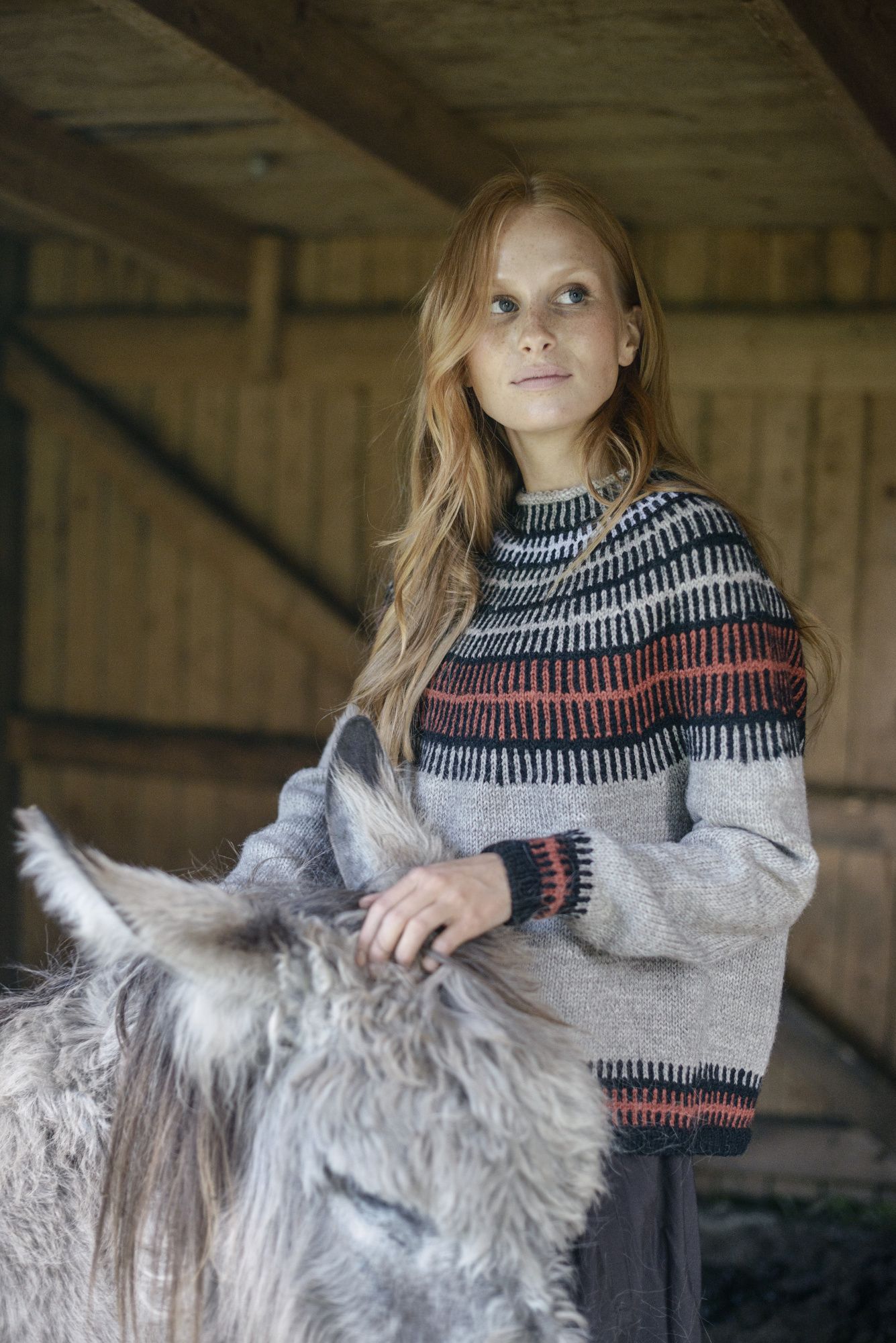 ”Idea neuleen kuvioon tuli jo ennen kilpailua, mutta kilpailu sai minut lopulta tarttumaan puikkoihin. Olin jo jonkin aikaa halunnut neuloa modernimman version perinteisestä kaarrokeneuleesta. Selailin Pinterestiä ja tutkin 7 Veljestä -langan värejä, ja lopullinen inspiraatio tulikin sitten marketin lankahyllyllä, kun löysin mieleisen väriyhdistelmän. Kirjoneulekuviosta tuli itselleni mieleen vanhat heinäseipäistä tehdyt aidat, joita näkyy peltojen ja niittyjen laidassa.