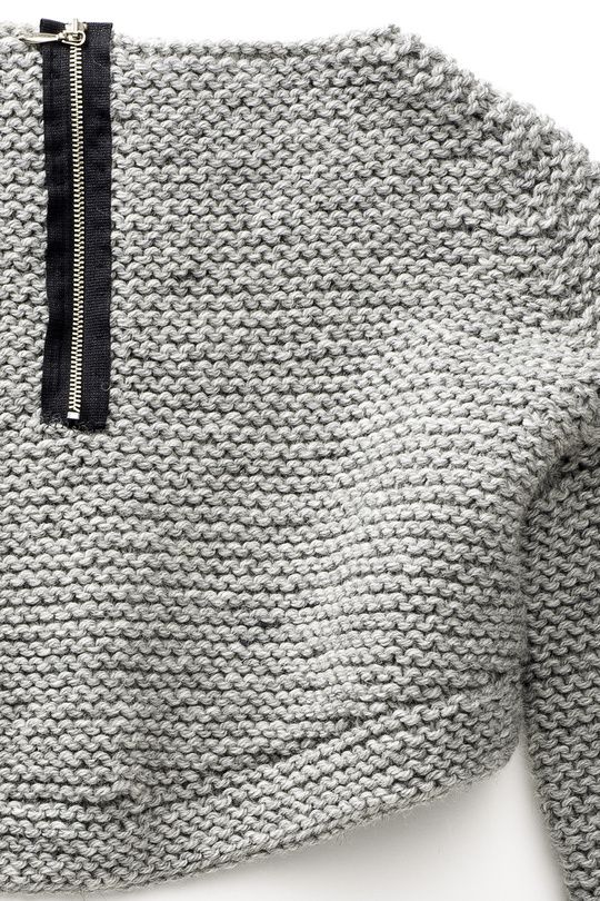 Novita Isoveli -langasta neulotun, lyhyen puseron takakappaleen kiinnostava yksityiskohta on vetoketju. Neulominen aloitetaan etu- ja takakappaleiden sekä hihojen alaosasta, sitten kappaleet yhdistetään ja pusero neulotaan yhtenä kappaleena pääntielle.