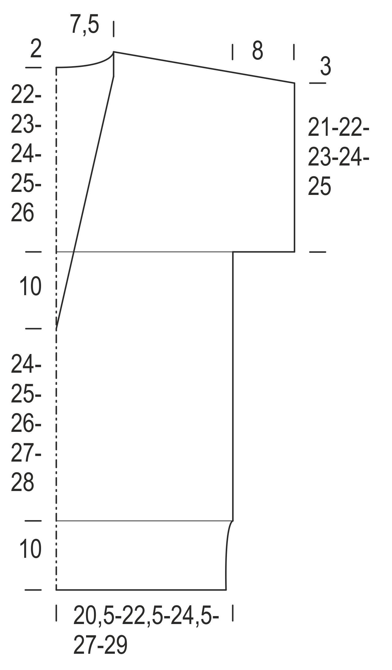 24 s ja 26 krs koho- ja pitsineuletta = 10 cm
