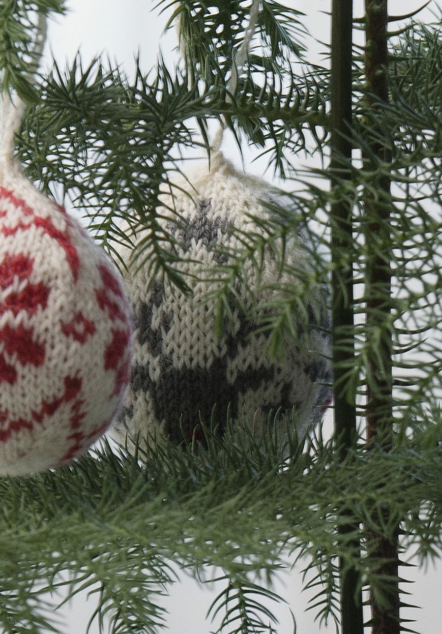 Perinteinen joulutunnelma syntyy itse tehdyistä koristeista. Minikokoiset villasukat sekä neulotut pallot Novita Venla -langasta sopivat hyvin myös pikkukuuseen.