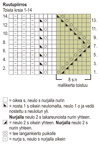 Pitsineule: neulo ruutupiirroksen ja ohjeen mukaan.