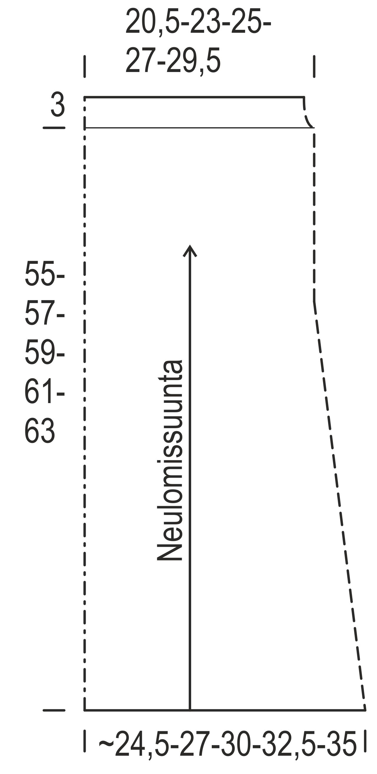 Hame neulotaan suljettuna neuleena helmasta vyötärölle ks. neulomissuunta kaavasta.