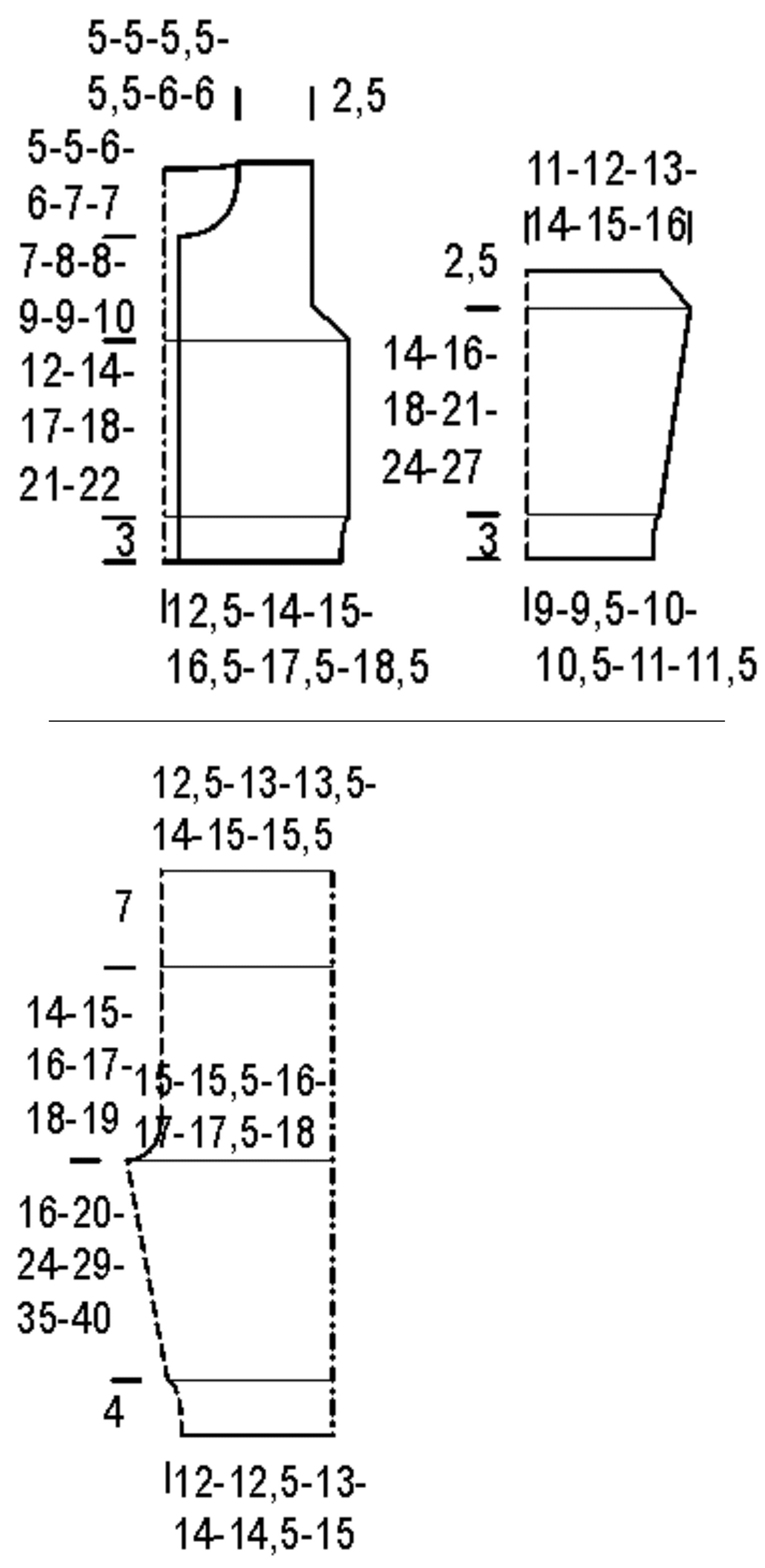 Pyörö- ja sukkapuikot Novita nro 2½-3 ja 3½ tai käsialan mukaan Muut tarvikkeet Takkiin 6(6)7(7)8(8) nappia ja housuihin 2 nappia