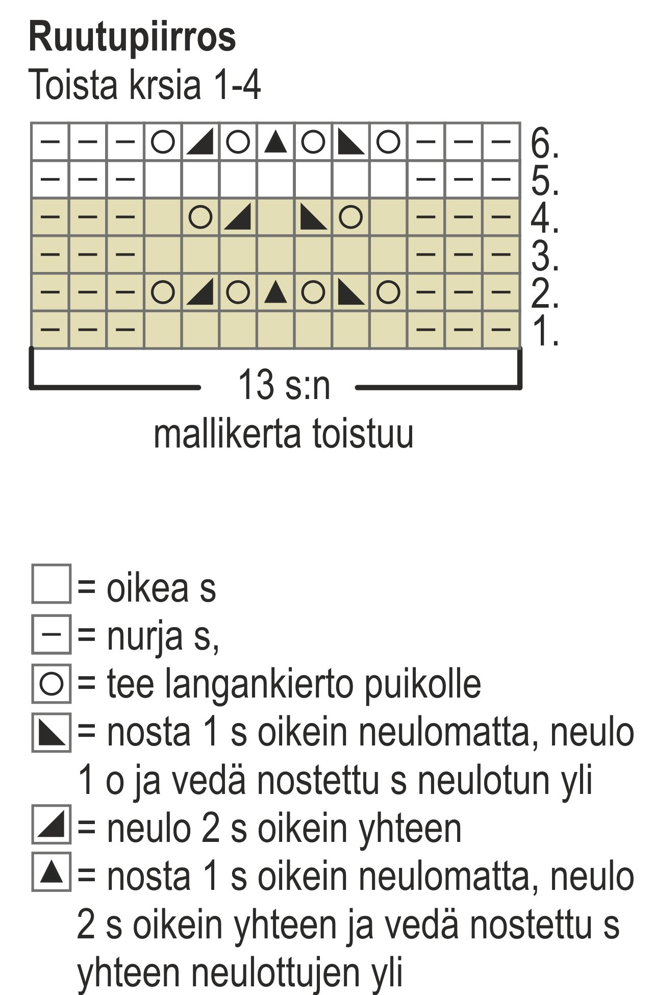 Neulo joustinneuletta ja toista pitsineuleessa ruutupiirroksen krsia 1-4.