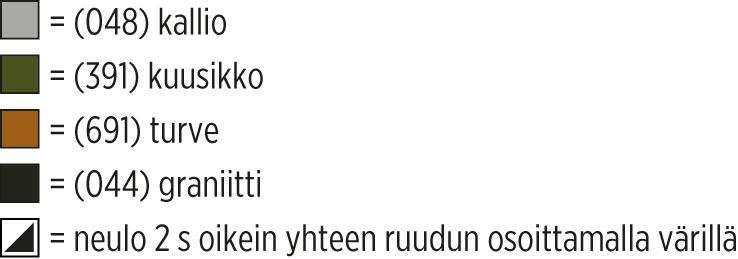 Novita 7 Veljestä (048) kallio 500(550)600(650)700(750) g (391) kuusikko 100(100)100(150)150(150) g (691) turve 100(100)100(100)100(100) g (044) grafiitti vajaa 50(50)100(100)100(100) g