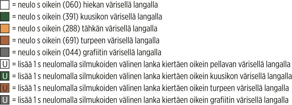 Huom. Kun olet neulonut ruutupiirroksen 88. krs:n, neulo sileää neuletta grafiitin värisellä langalla.