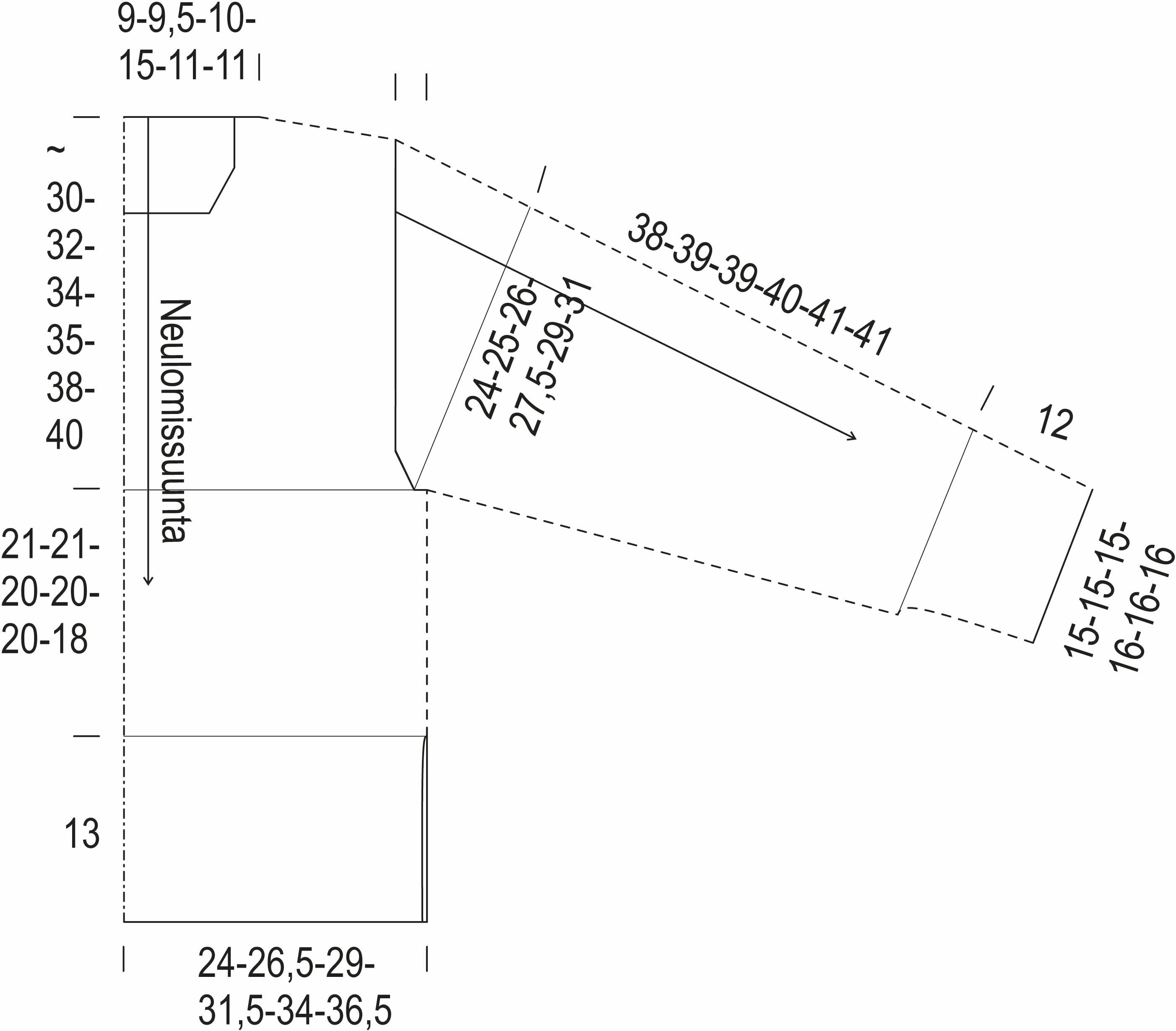 Huomioitavaa Taka- ja etukappaleen yläosat neulotaan erikseen tasona ylhäältä alaspäin. Alaosa neulotaan kainalosta alaspäin helmaan suljettuna neuleena. Hihat neulotaan kädentieltä hihansuuhun suljettuna neuleena. Voit valita neulotko pääntielle poolokauluksen vai matalan reunuksen.