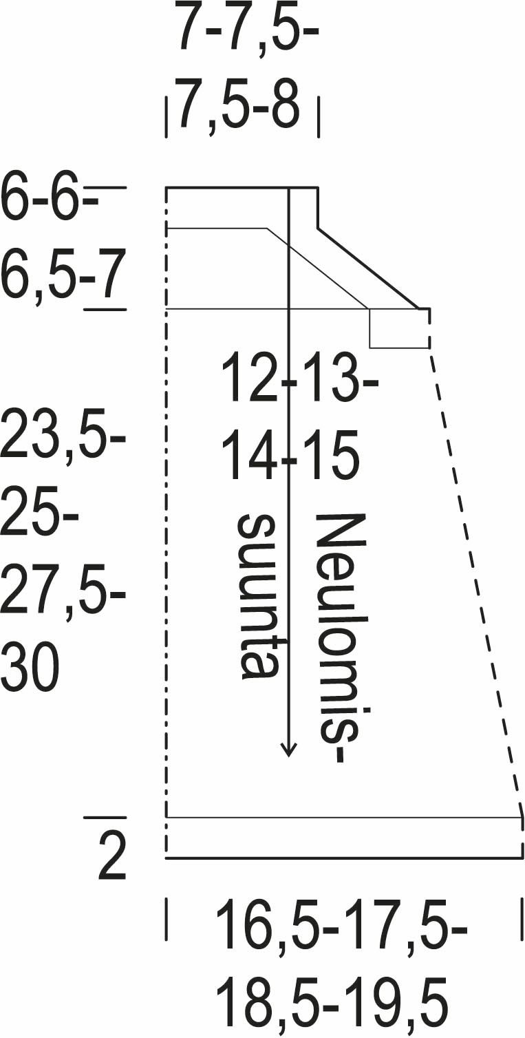 Toista lisäykset 2(2)2,5(3) cm:n välein vielä 9 kertaa. Työssä on 146(154)162(170) s.