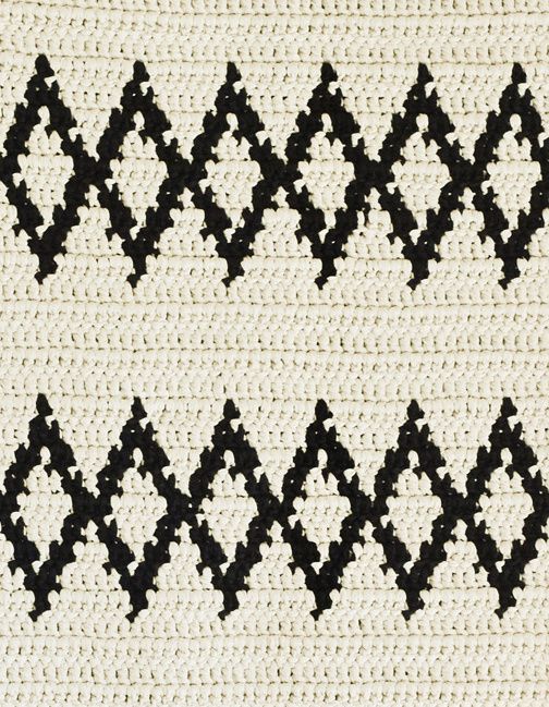 Virkkaa pylväitä piirroksen ja ohjeen mukaan. Kuviot virkataan kirjovirkkauksena.