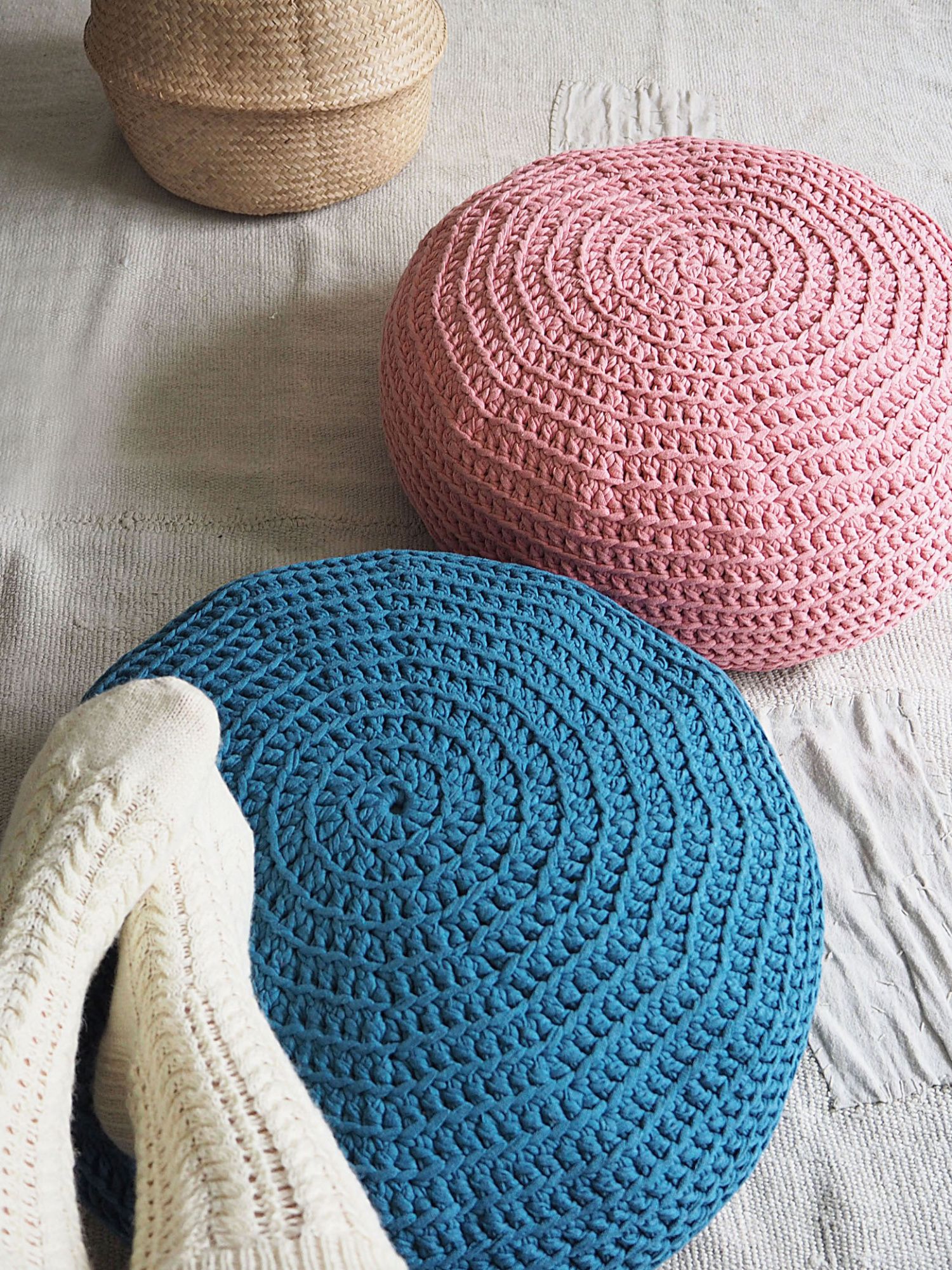 Virkkuukoukku Novita nro 8-10 tai käsialan mukaan Muut tarvikkeet: Säkkituolin täyterouhetta (EPS-rouhe, Etola), päällisen väristä puuvillakangasta 1 m ja 30 cm pitkä vetoketju.