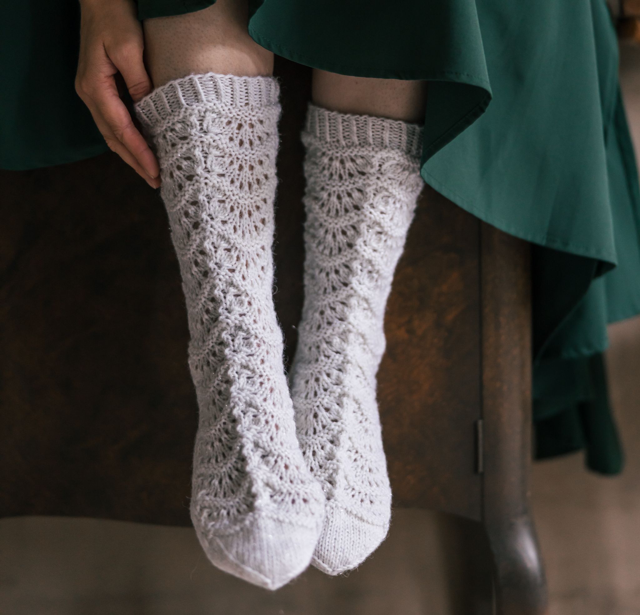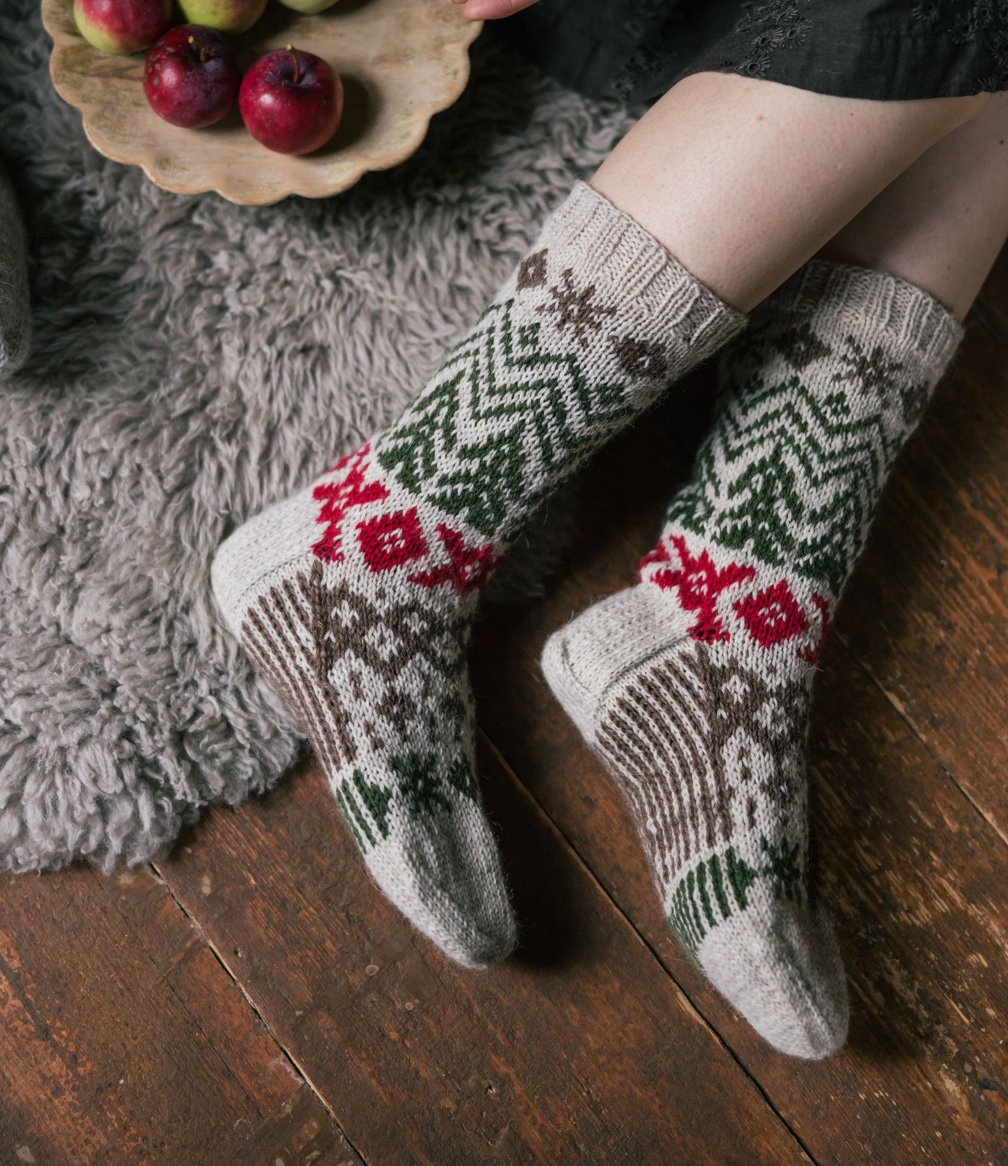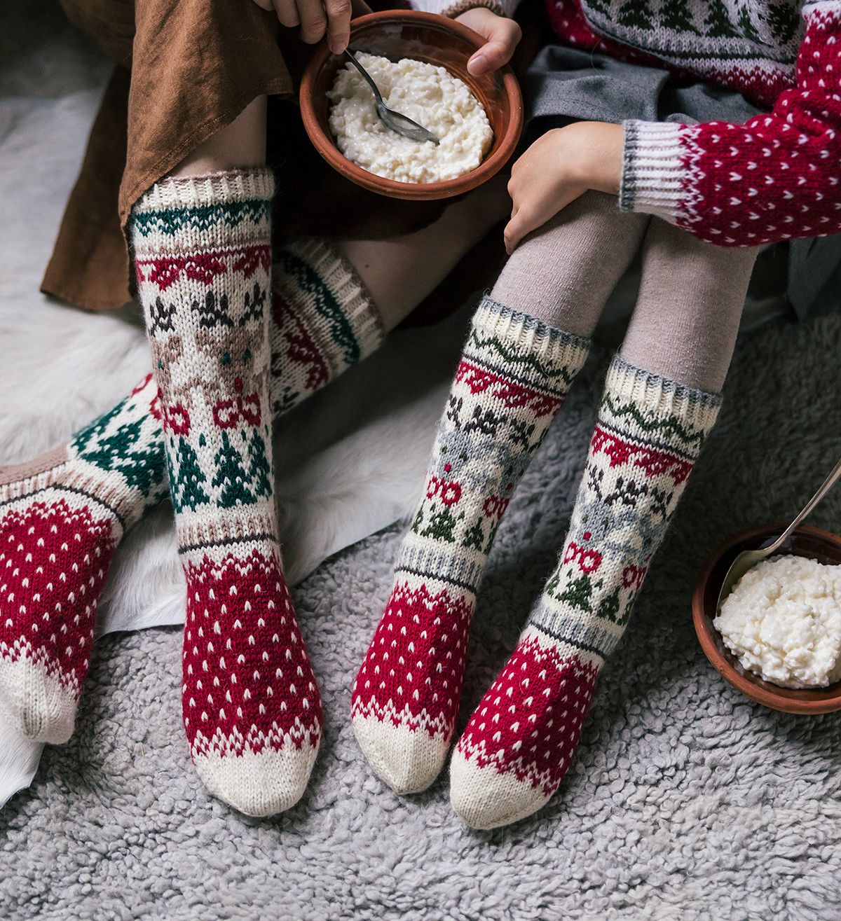 Minna Metsäsen suunnittelemat Hopeahanki-sukat säihkyvät uudesta 7 Veljestä Joulu -langasta, jossa metallinhohto tuo juhlan tuntua jokaiseen silmukkaan. Näyttävät ja yllättävän helpot sukat ovat täynnä joulun taikaa.
