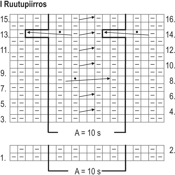 Storlek 98/104 cm: sticka 5 m från vänster i diagram I, upprepa zon A (10 m) 16 gånger och sticka 5 m i höger sida.