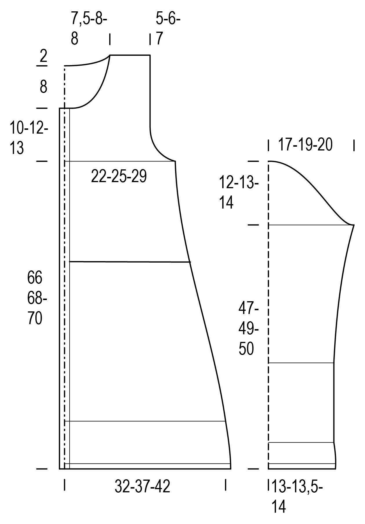 När ärmhålet mäter 20(22)23 cm maska av de resterande 15(19)23 m för axel.