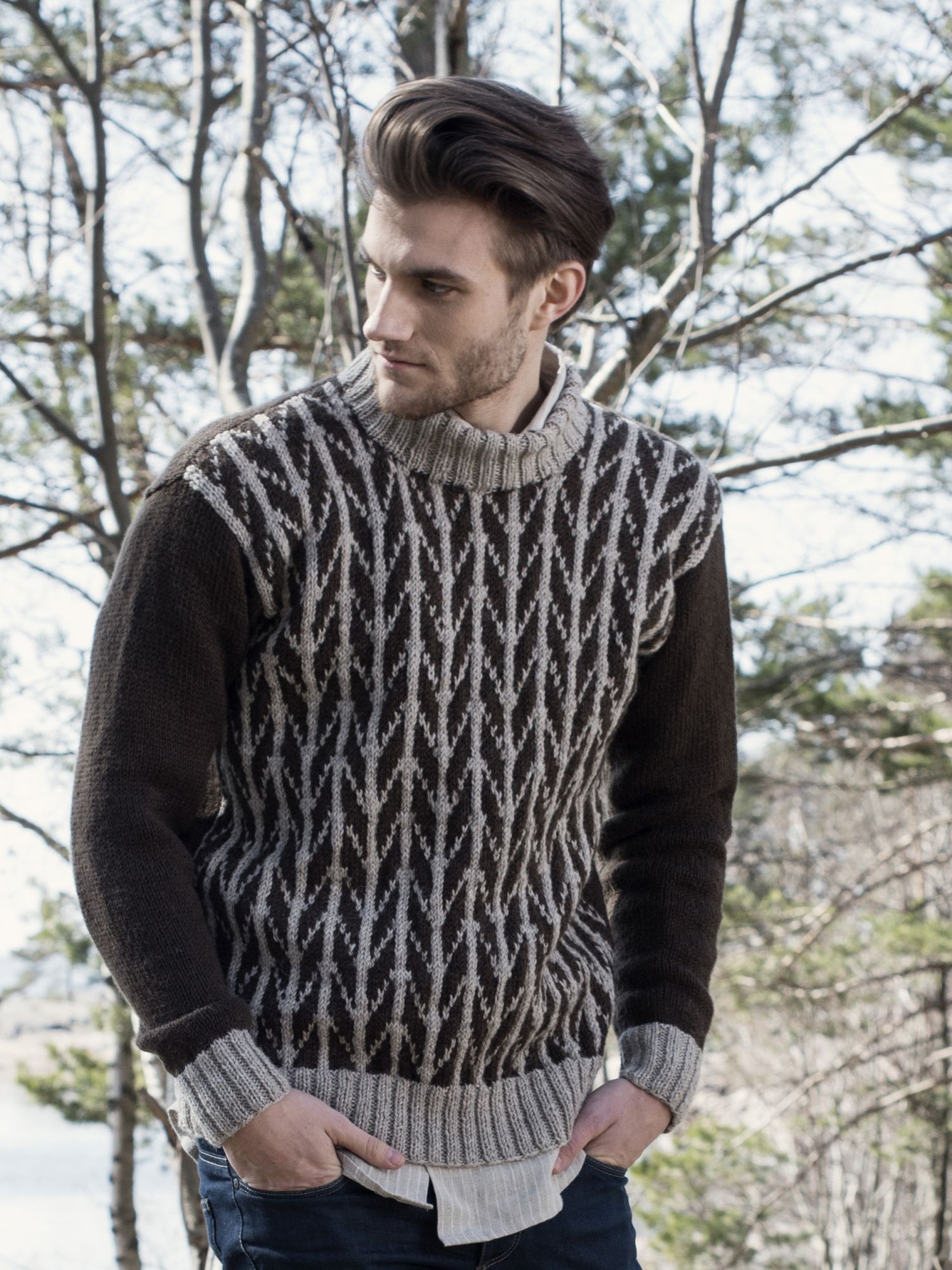 En imponerande flerfärgsstickad herrtröja i Novita 7 Bröder garn. Samtidigt både traditionell och moder. En självklarhet i var mans garderob!