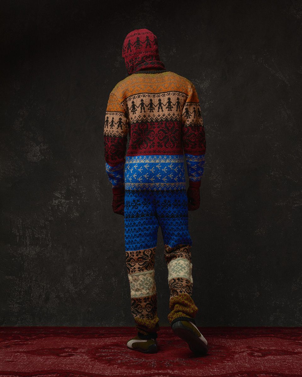 I den stickade overallen Jari har designern Rolf Ekroth skickligt kombinerat färger med Novitas garner 7 Veljestä, 7 Veljestä Nature och Soft Merino 4PLY. De spektakulära färgmönstren är inspirerade av gamla traditionella stickade kläder och vintageskidkläder från 50-talet.