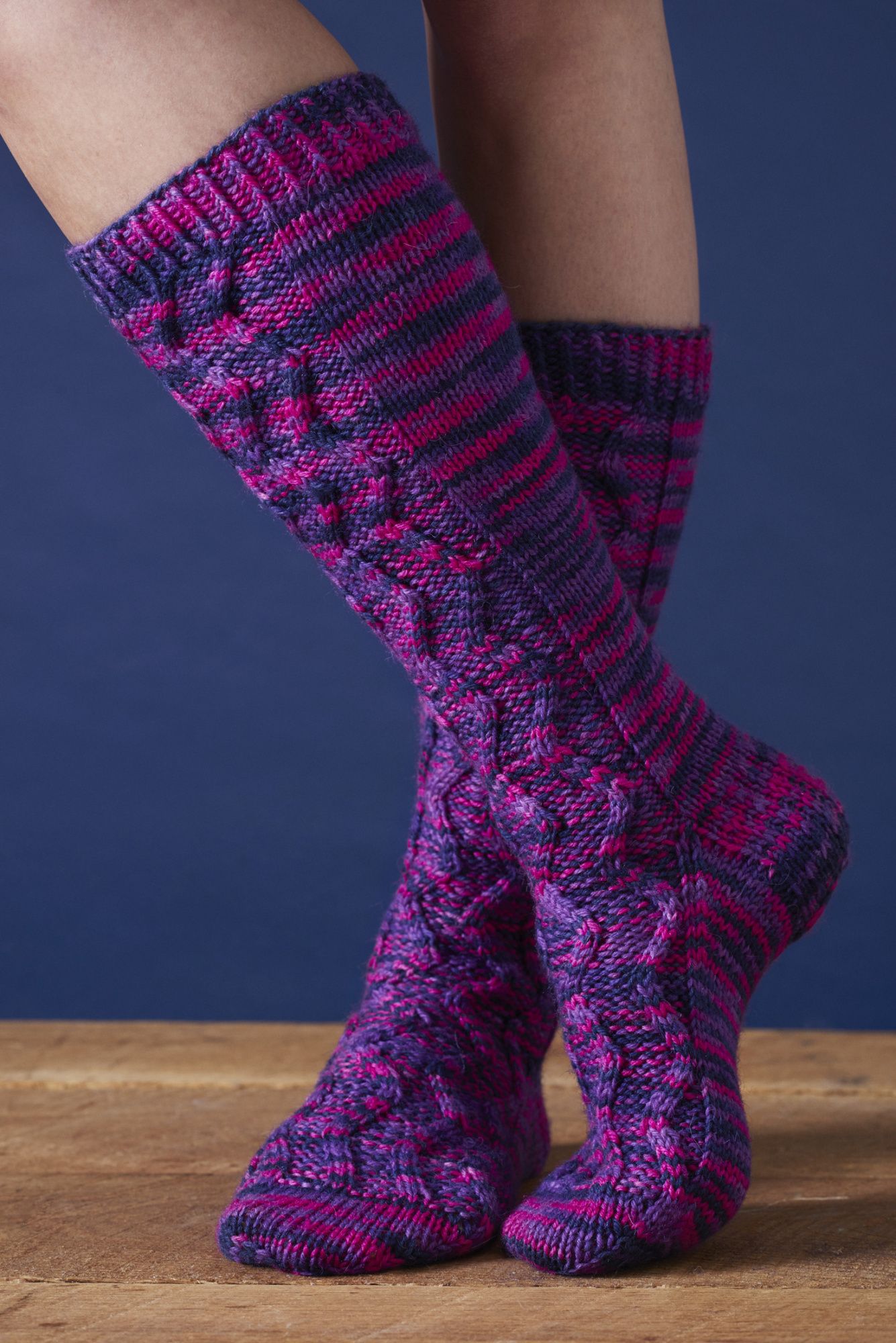 Långa stickade strumpor i Novita 7 Bröder Polaris garn med en strukturdetalj.