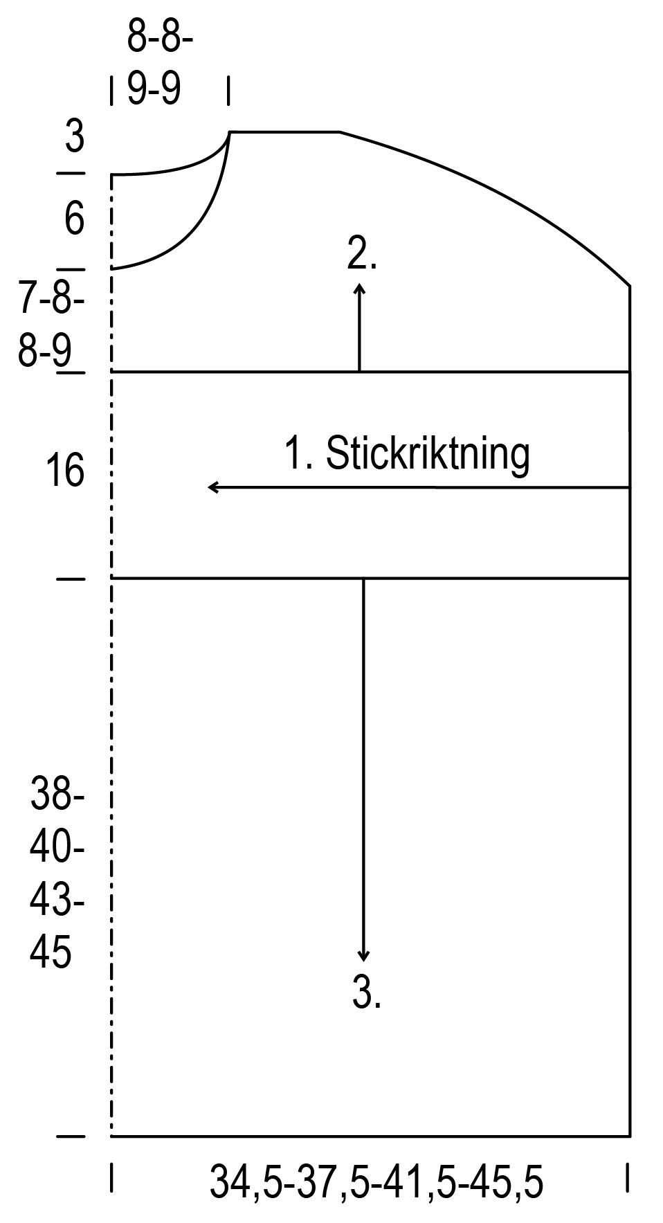 Rundsticka (80 cm): Novita nr 4½ eller enligt handlag Rundsticka (40 cm): Novita nr 4-4½ till halsringningen