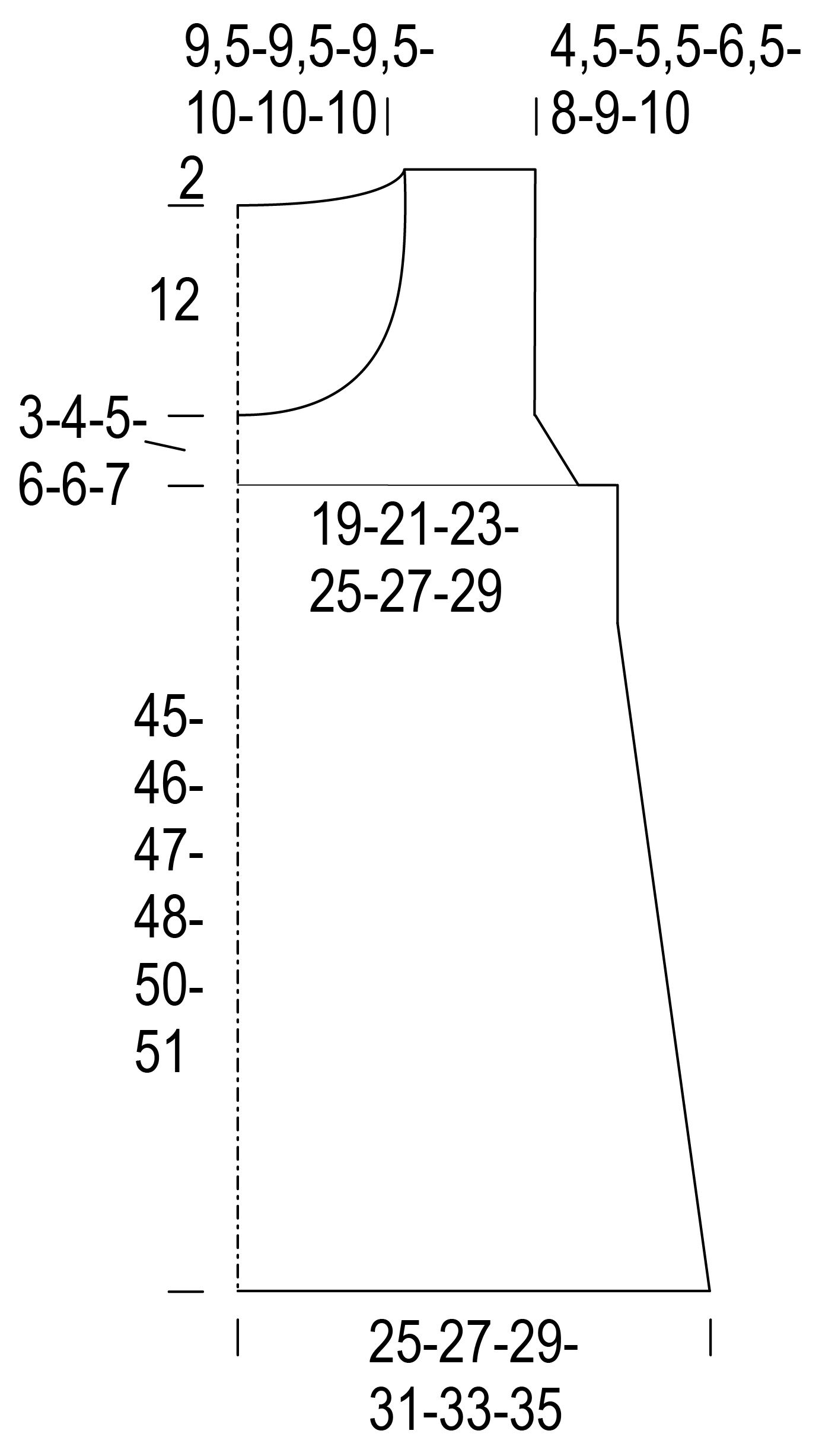 När ärmhålet mäter 17(18)19(20)20(21) cm, maska avde resterande 11(13)15(16)18(20) m för axel.