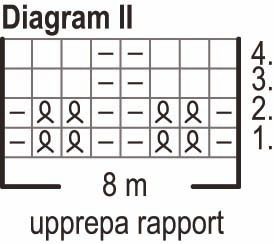 Börja med resårstickning runt från varv 3 i diagram I(II)III och upprepa sedan varv 4.